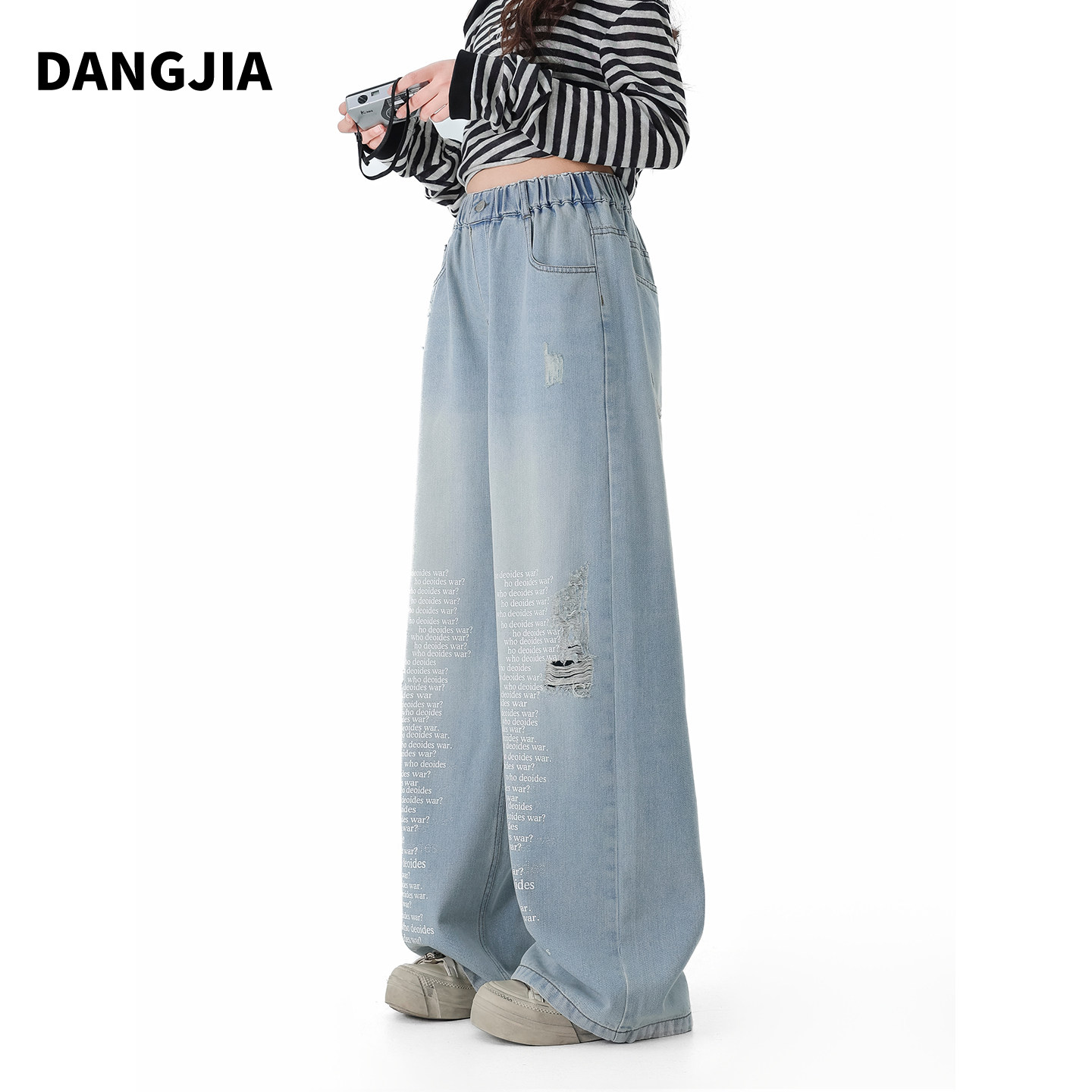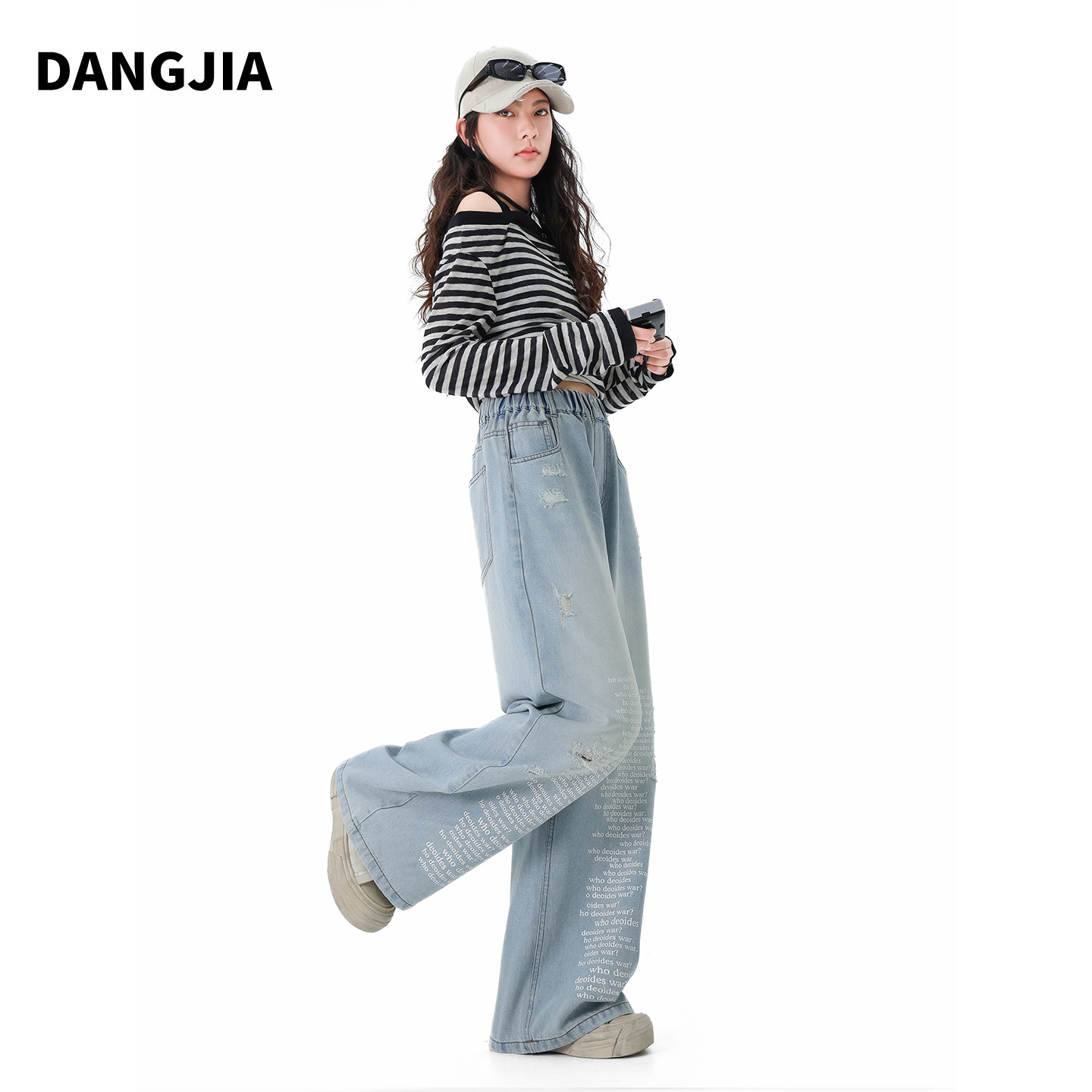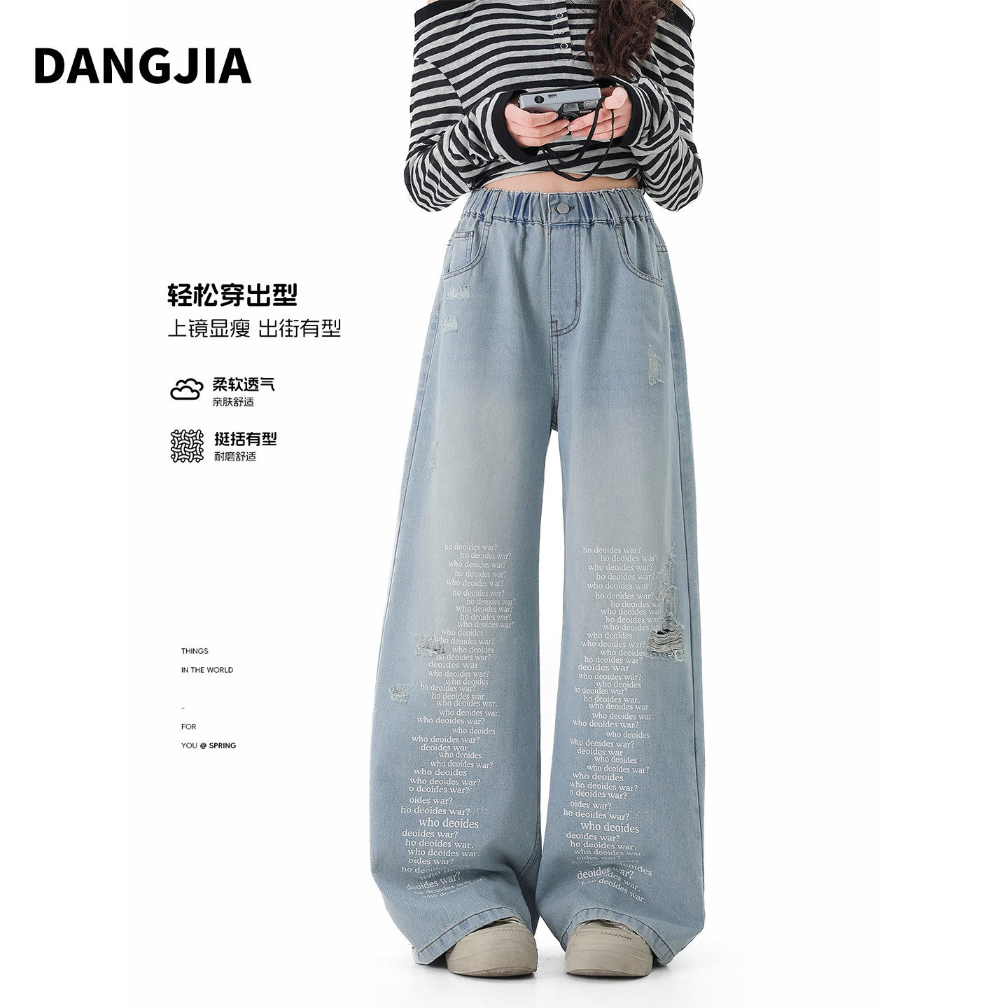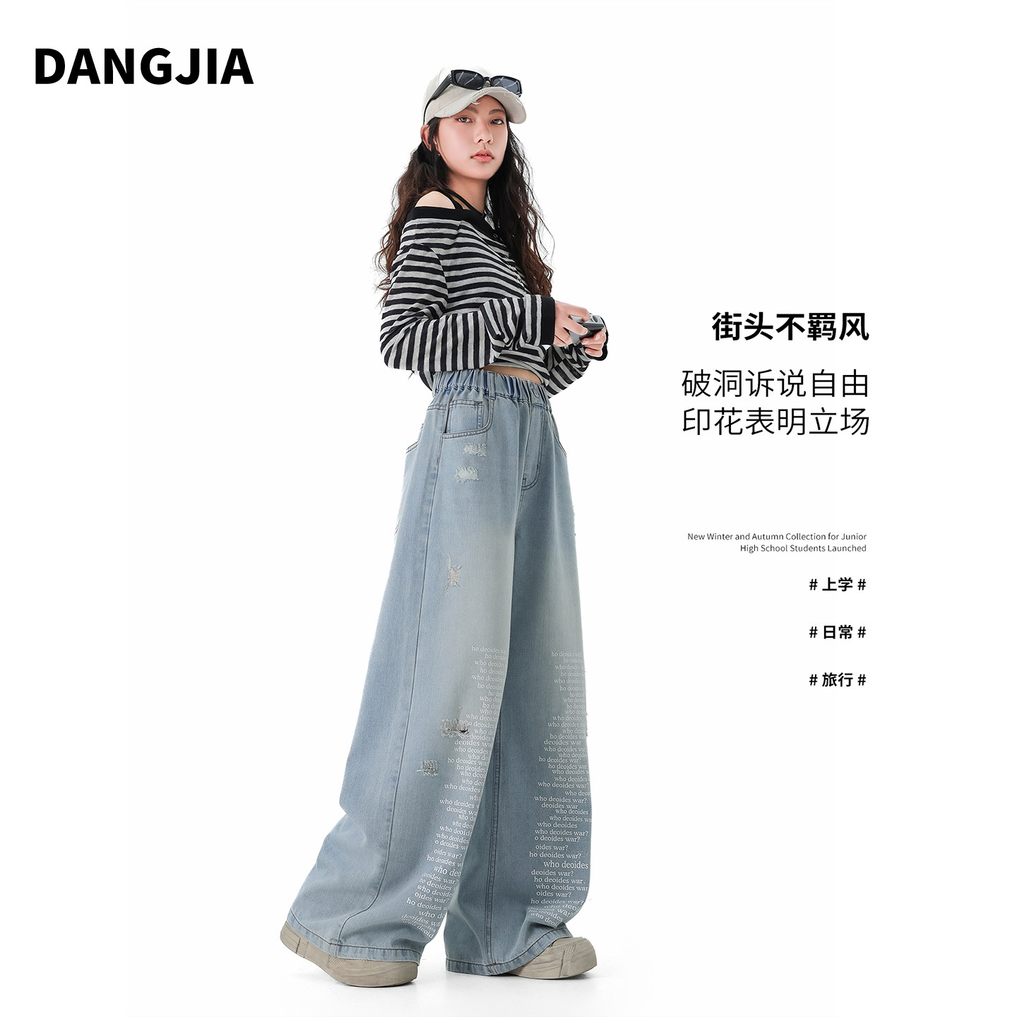 青少年女孩街头风破洞牛仔裤女大童阔腿裤春款韩系潮酷初中生裤子