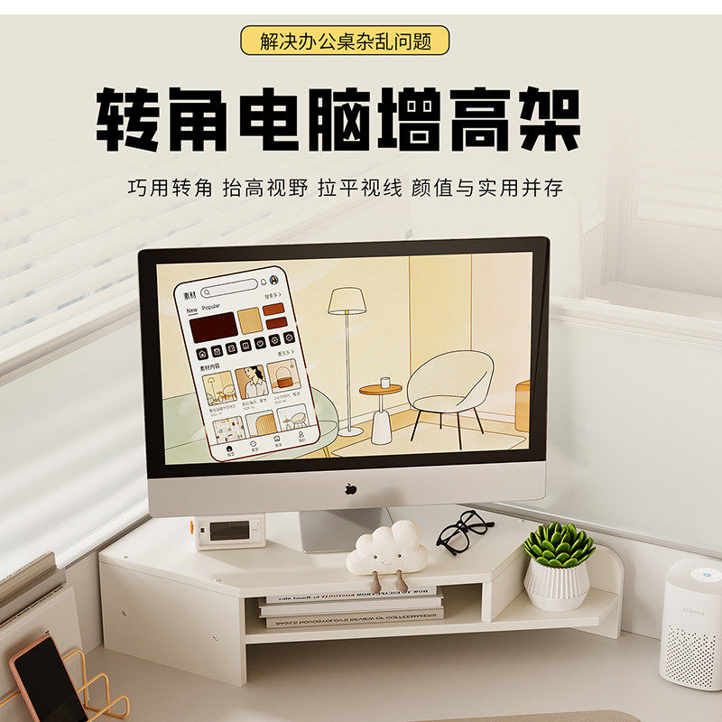 台式电脑增高架工位转角置物架书桌显示器底座办公室三角区收纳架