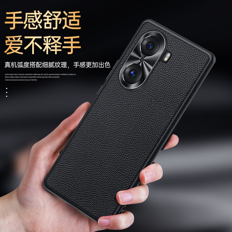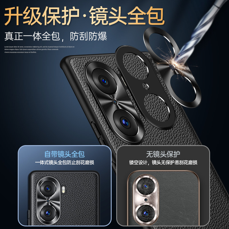 适用于华为荣耀60手机壳奢华真皮荣耀60pro保护套金属镜头全包防摔超薄商务男pr0新款潮流女简约外壳个性款
