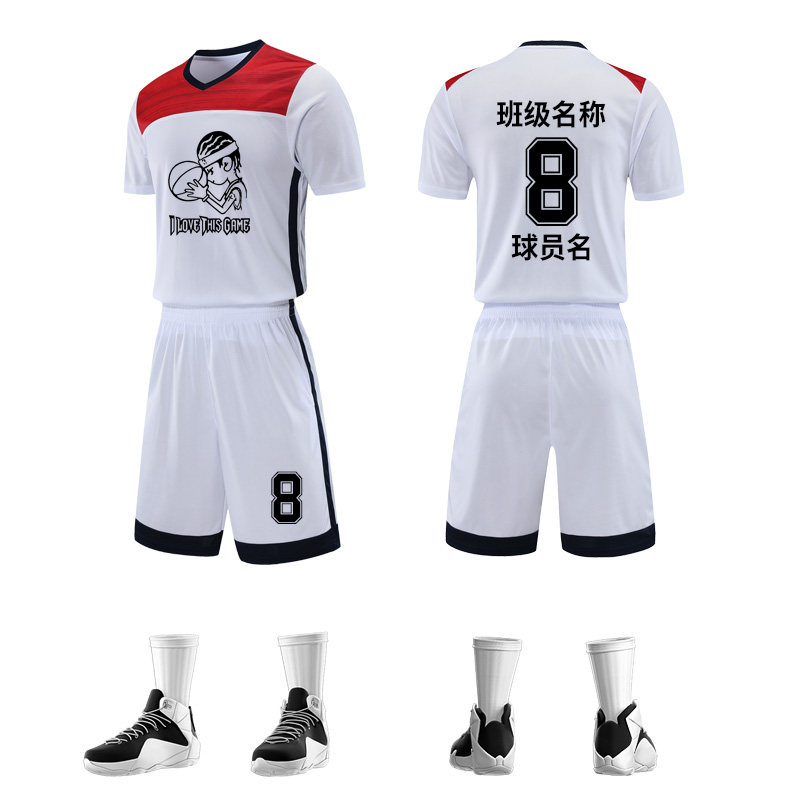 篮球服套装定制短袖球衣女班级组队团购有袖训练服带袖比赛队服白