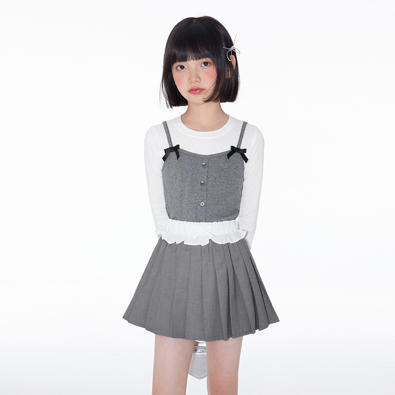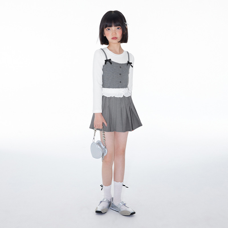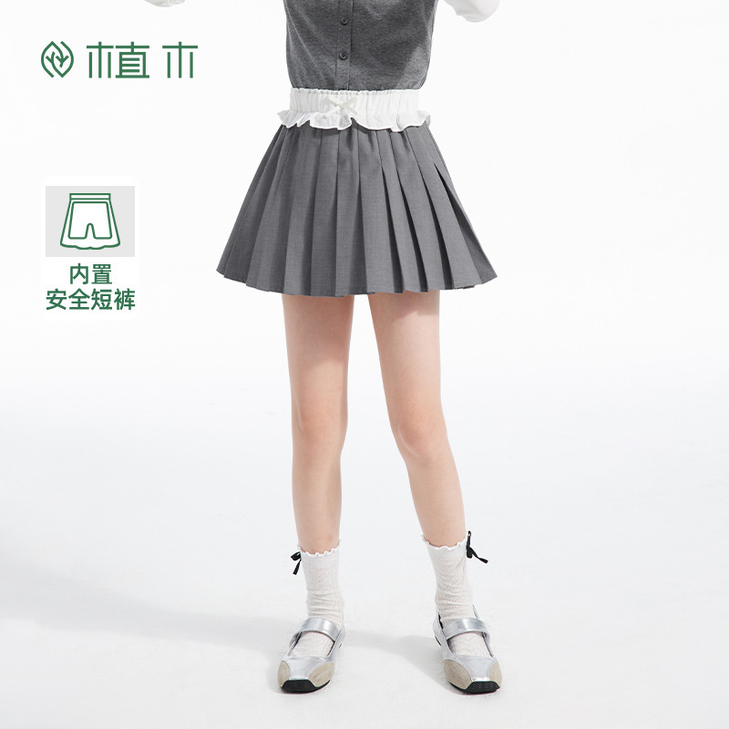 311线报网描述:女童 甜美蝴蝶结拼接百褶半裙 A字半身裙