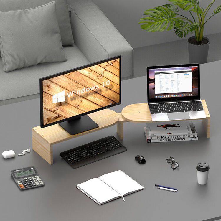显示器增高架实木双屏幕电脑增高架显示屏桌面托架办公室台式支架