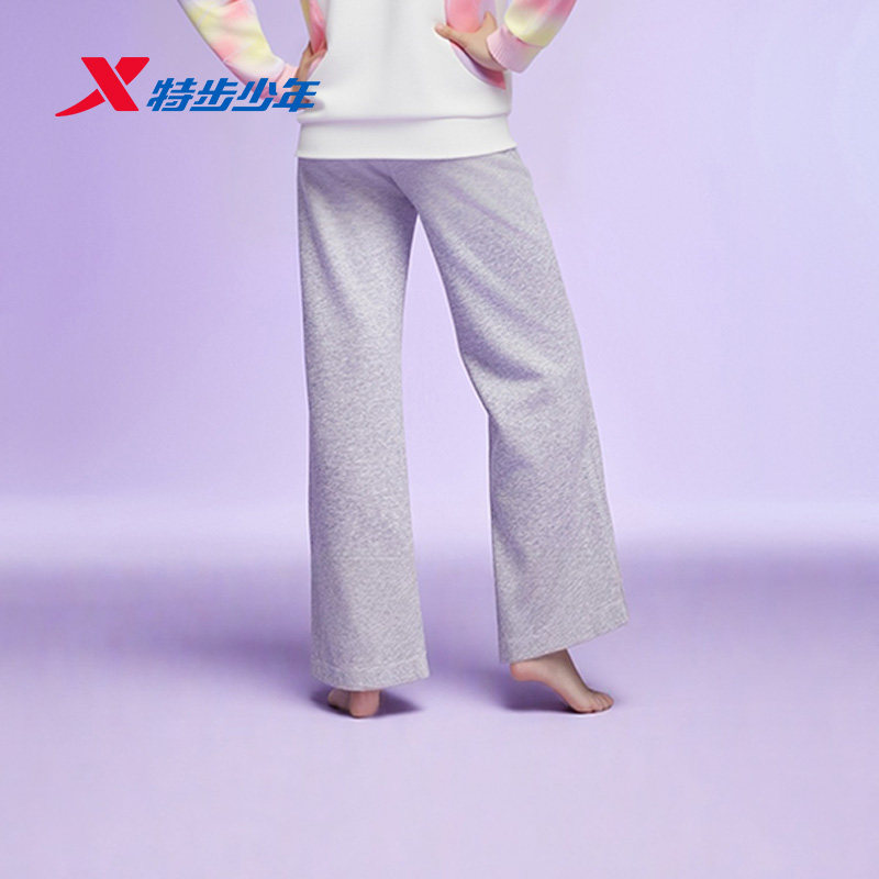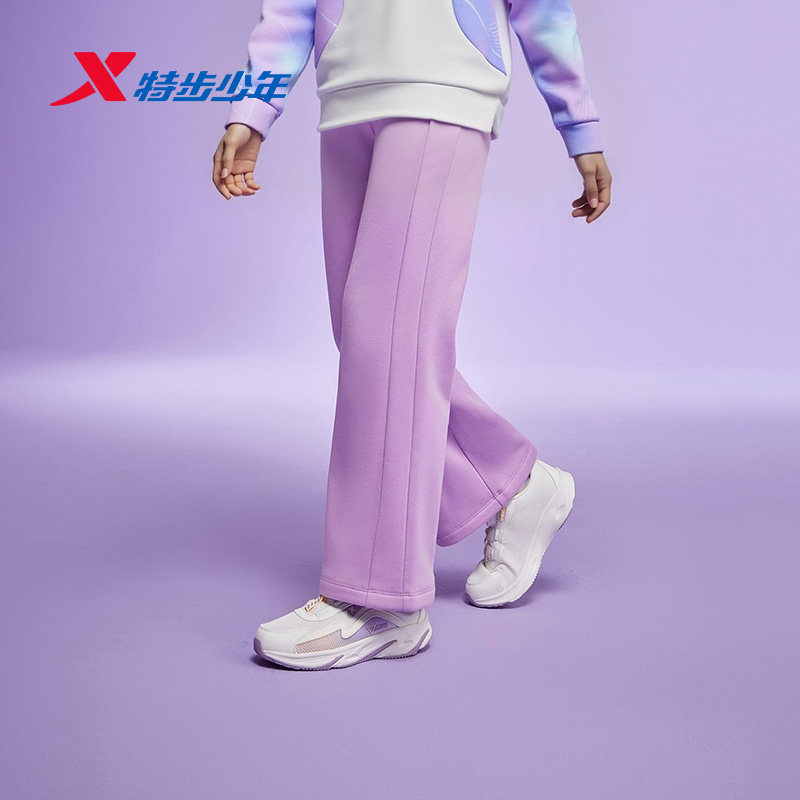 特步童装女童阔腿裤2026春秋季新款儿童裤子大童薄绒运动裤休闲裤