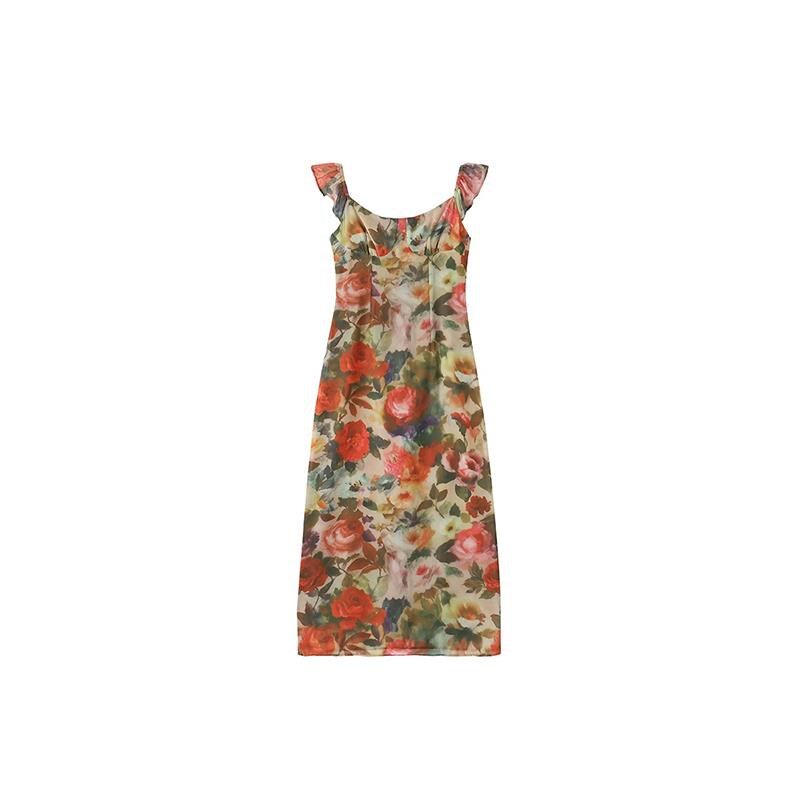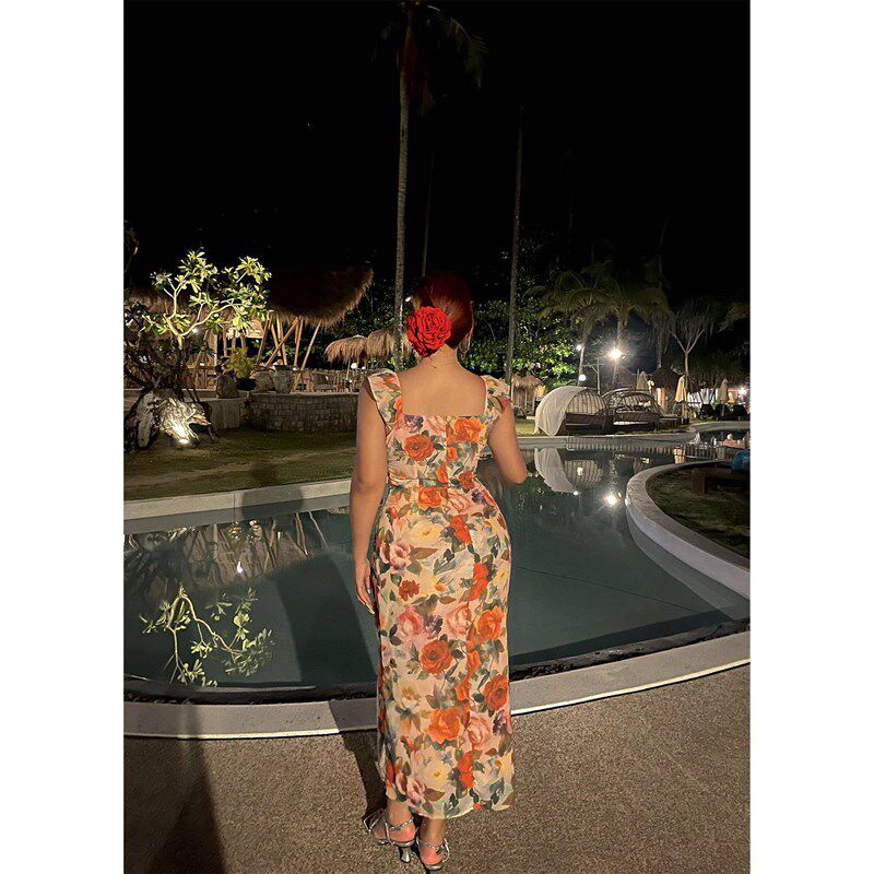 楠哥微胖大码胖mm连衣裙女夏季薄款修身显瘦复古碎花海边度假长裙