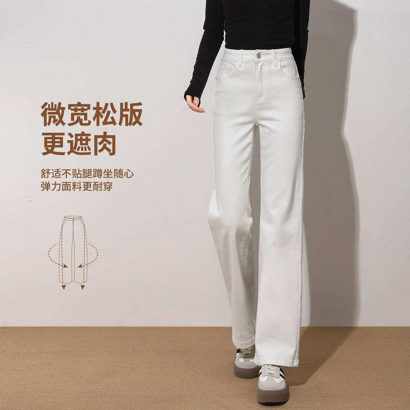 直筒牛仔裤女2026年新款时尚潮流春秋白色高腰小个子窄版阔腿裤子