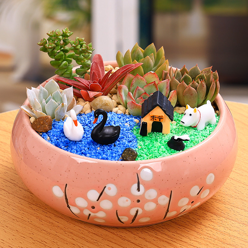 白瓷花盆多肉DIY微景观材料包多肉植物组合公司社团活动多肉盆栽
