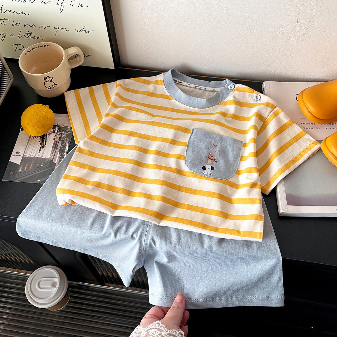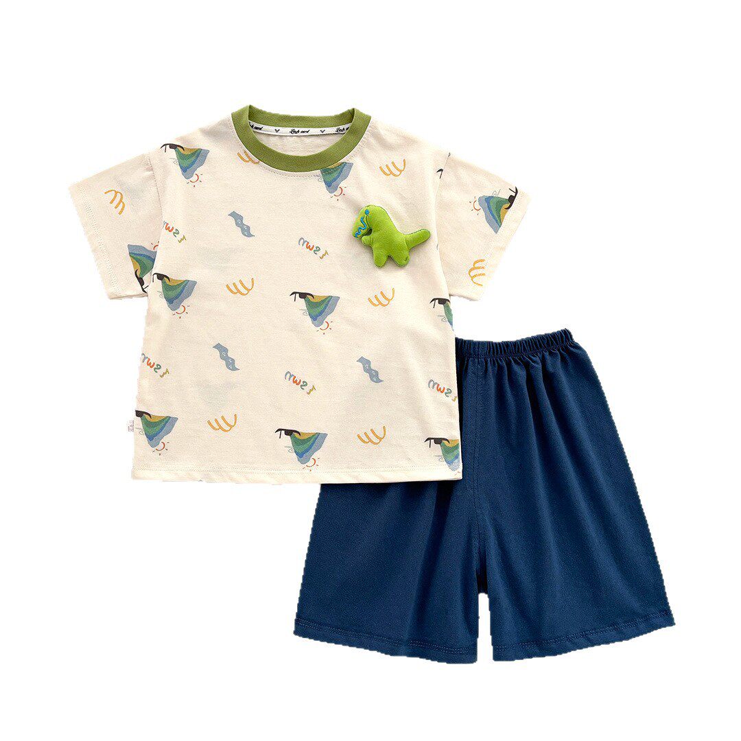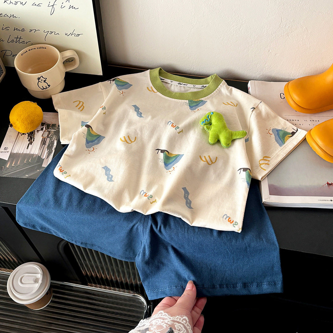 新款儿童短袖套装纯棉男童玩偶夏装宽松抗菌宝宝短裤婴儿A类衣服