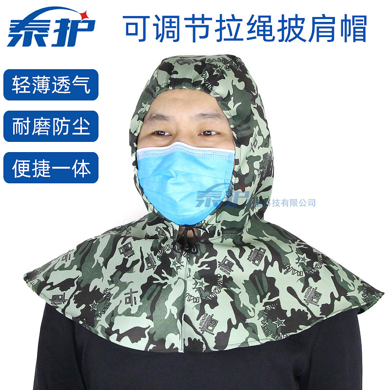 迷彩布防尘帽披肩帽加大防晒耐磨打磨搬运透气劳保牛仔薄款防护帽