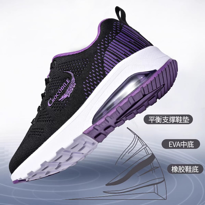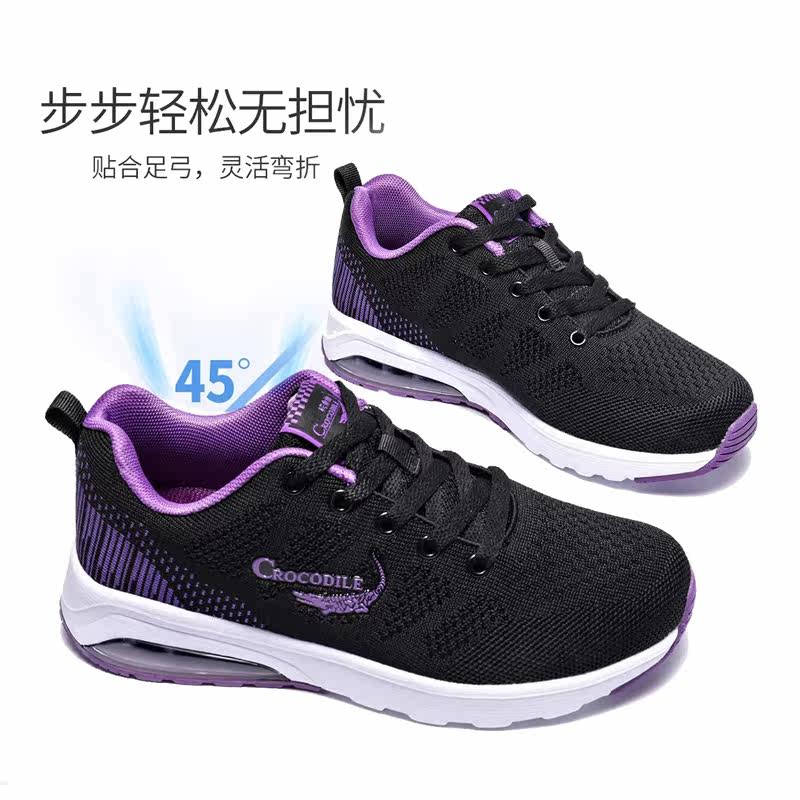 鳄鱼恤春夏新款运动休闲鞋女网面透气轻便垫鞋休闲运动健步慢跑鞋