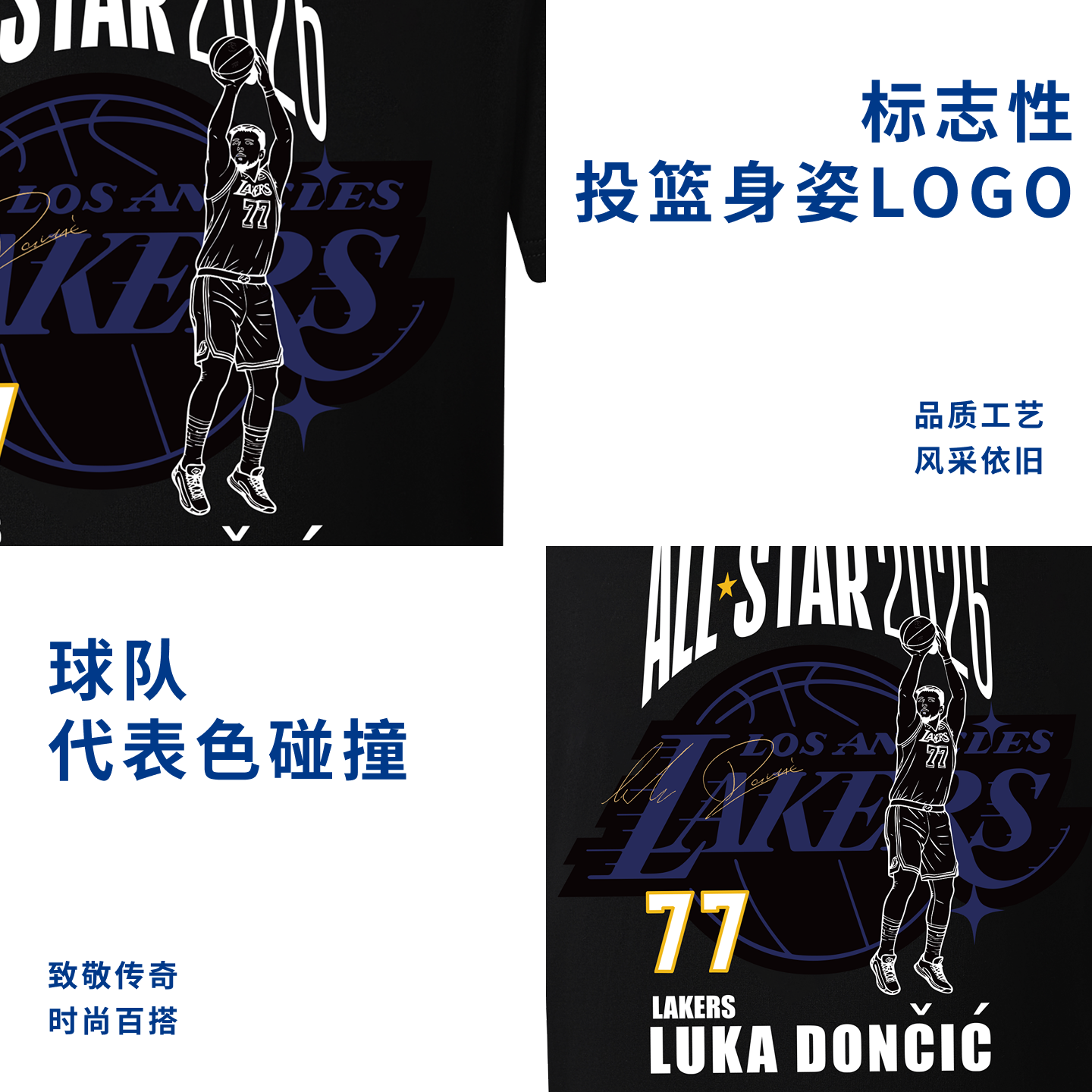 【全明星】NBA官方26夏季东契奇文班亚马纯棉透气运动短袖T恤男女