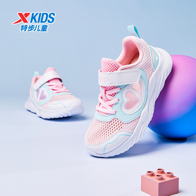 特步童鞋儿童魔术贴休闲鞋秋季新款女童运动鞋幼小童爱心透气鞋子