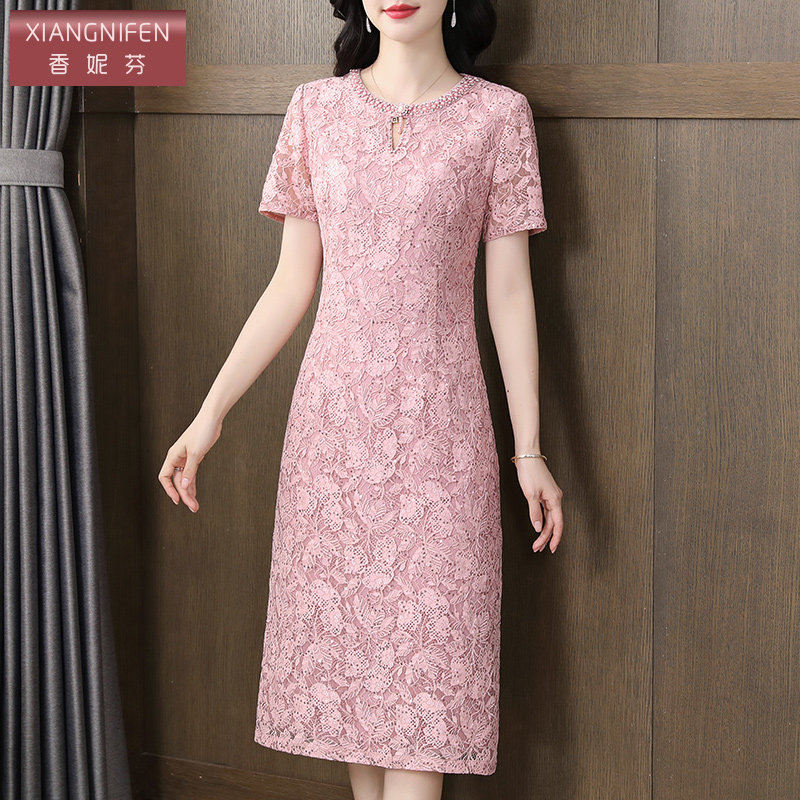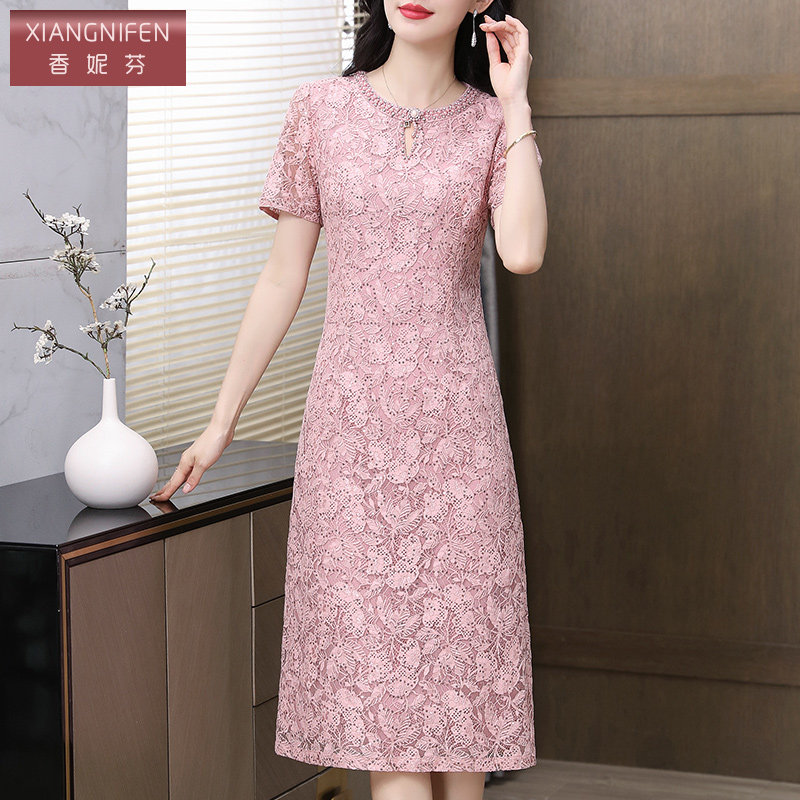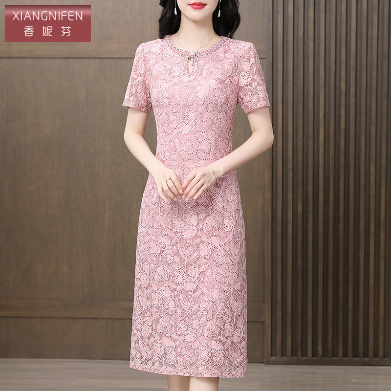 香妮芬高端蕾丝中年连衣裙女2026新款夏季气质高级感轻奢收腰裙子