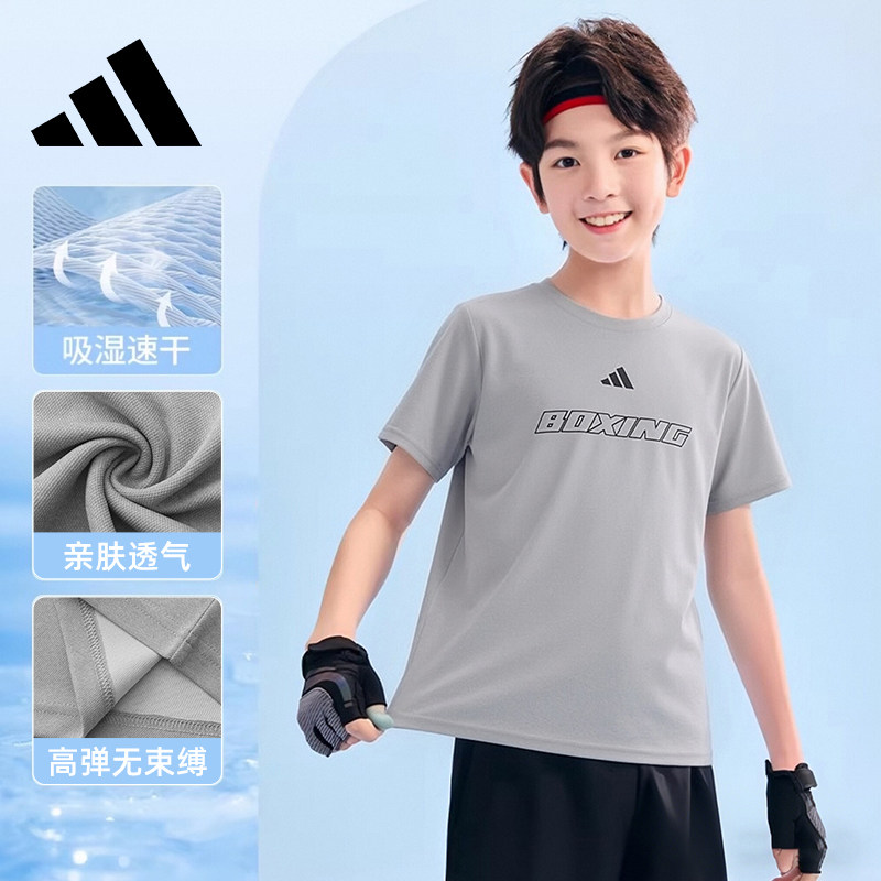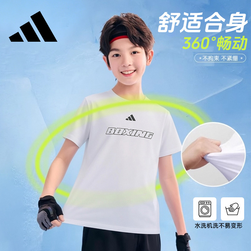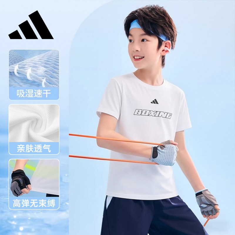 Adidas阿迪达斯儿童吸汗速干短袖T恤男孩夏男童女童中大童运动服