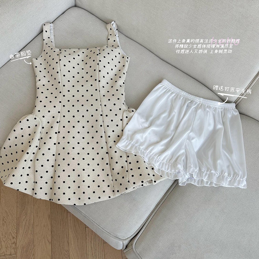 双轨虞书欣姜暮同款设计感小个子白色波点连衣裙高级感蓬蓬短裙女