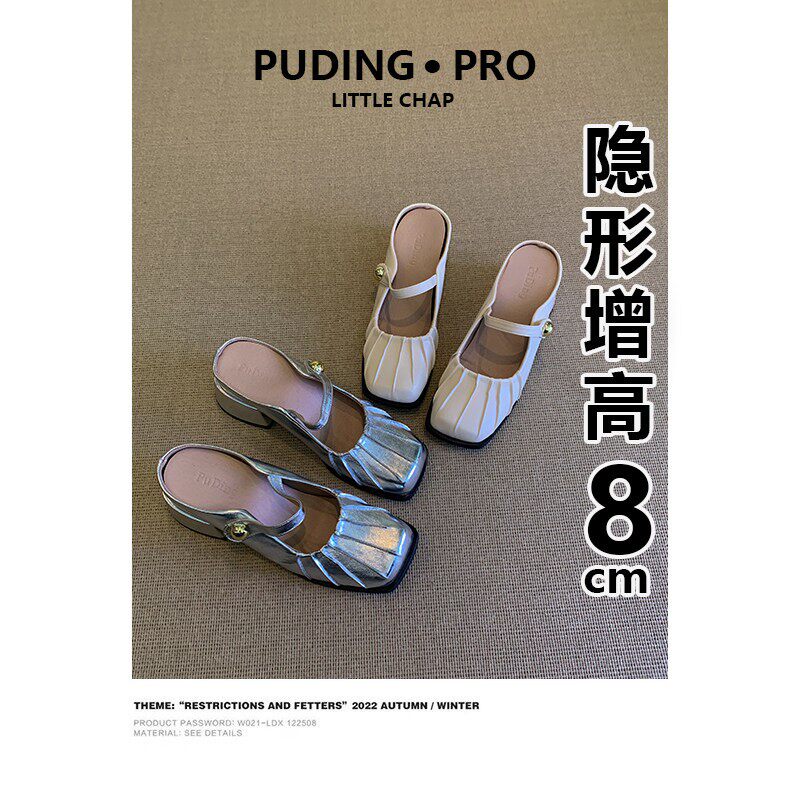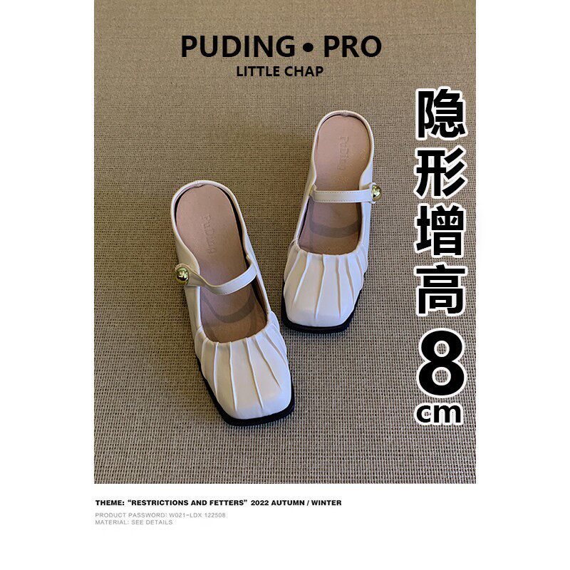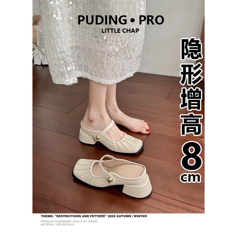 小个子8cm内增高包头半拖鞋女外穿2026年一字带配裙子高跟单鞋女