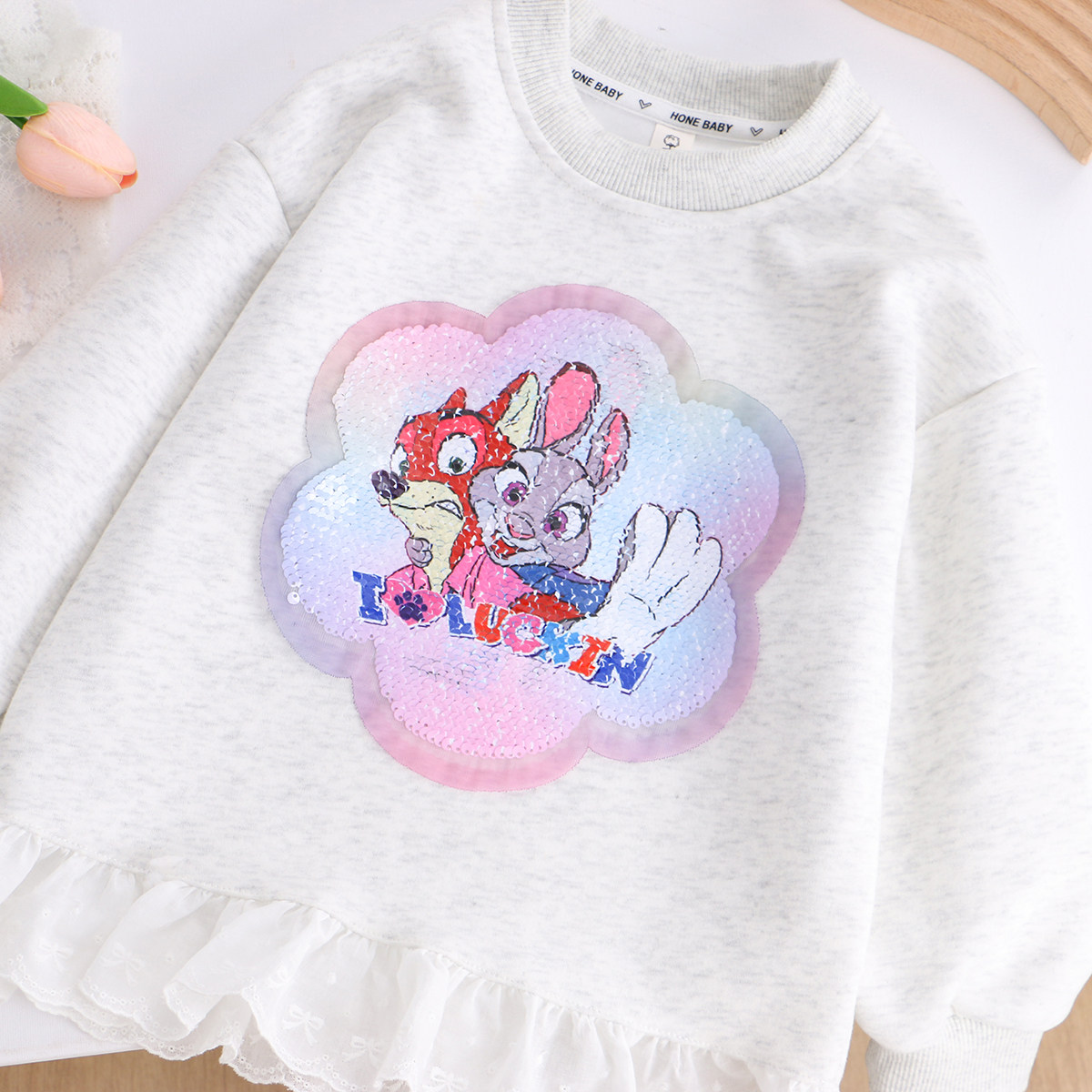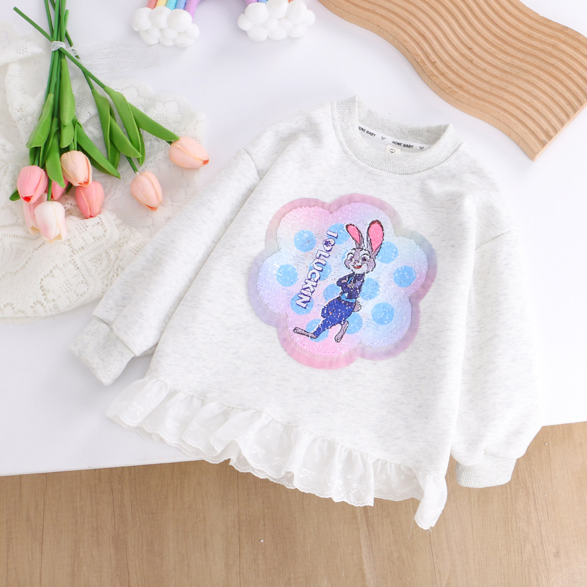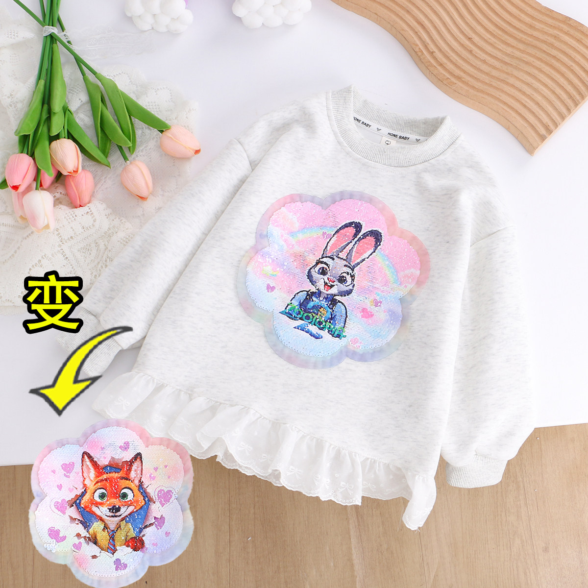 女童纯棉朱迪变色亮片花边卫衣裙衫春秋款儿童宝宝动物城长袖上衣