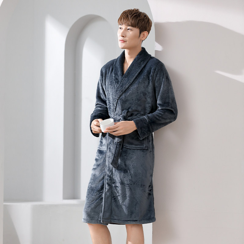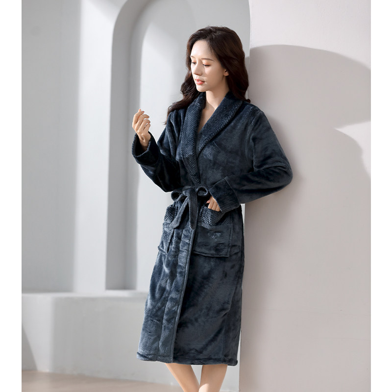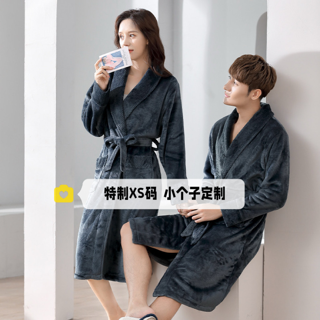 秋冬150cm小个子情侣法兰绒加厚睡袍中长款保暖家居服带可外穿xs