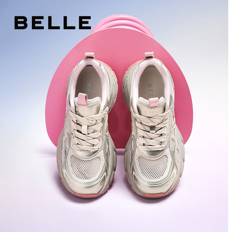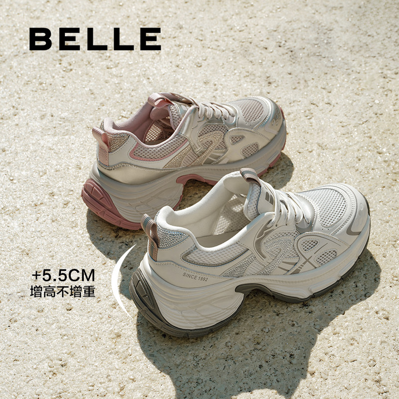 百丽女鞋子厚底银色老爹鞋夏季新款增高鞋运动休闲鞋D7S1DBM5预