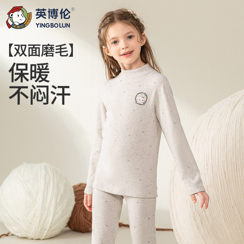英博伦儿童秋衣秋裤套装女童纯棉加厚棉毛衫中大童保暖内衣秋冬季