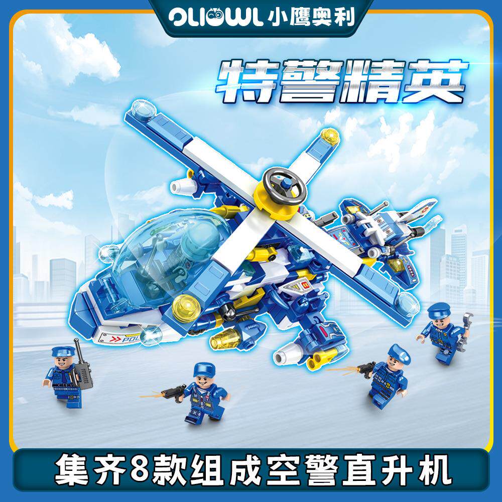 兼容乐高拼装摩托车小颗粒积木模型军事士兵人仔直升机1套8款