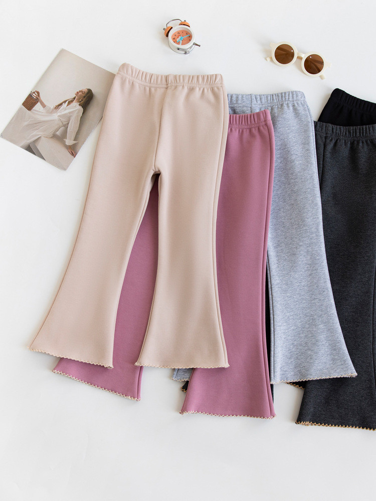 女童喇叭裤春秋款抓绒打底裤外穿薄绒深秋微喇裤子儿童初冬棉长裤