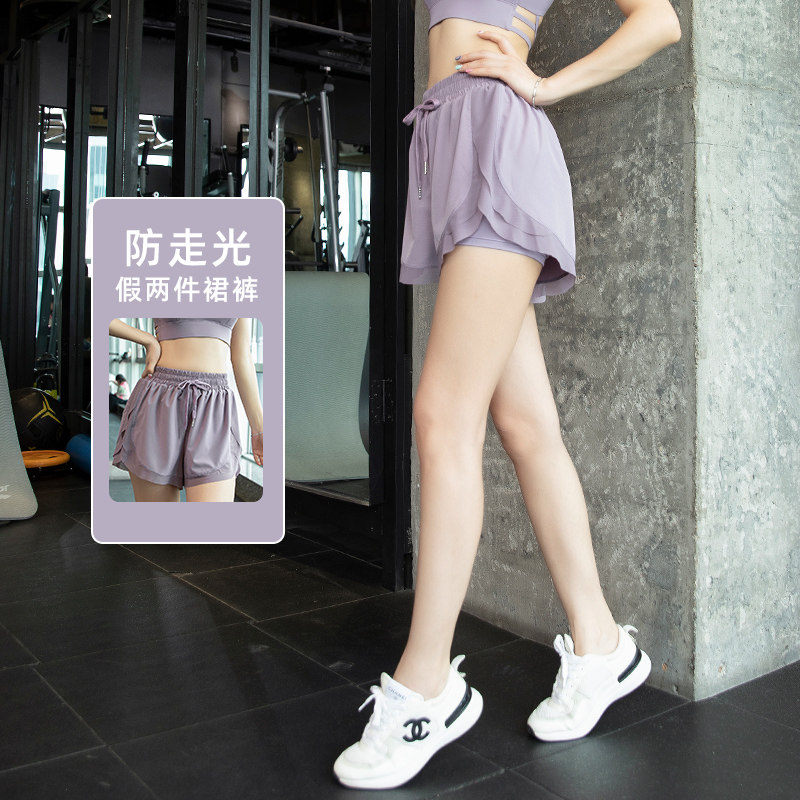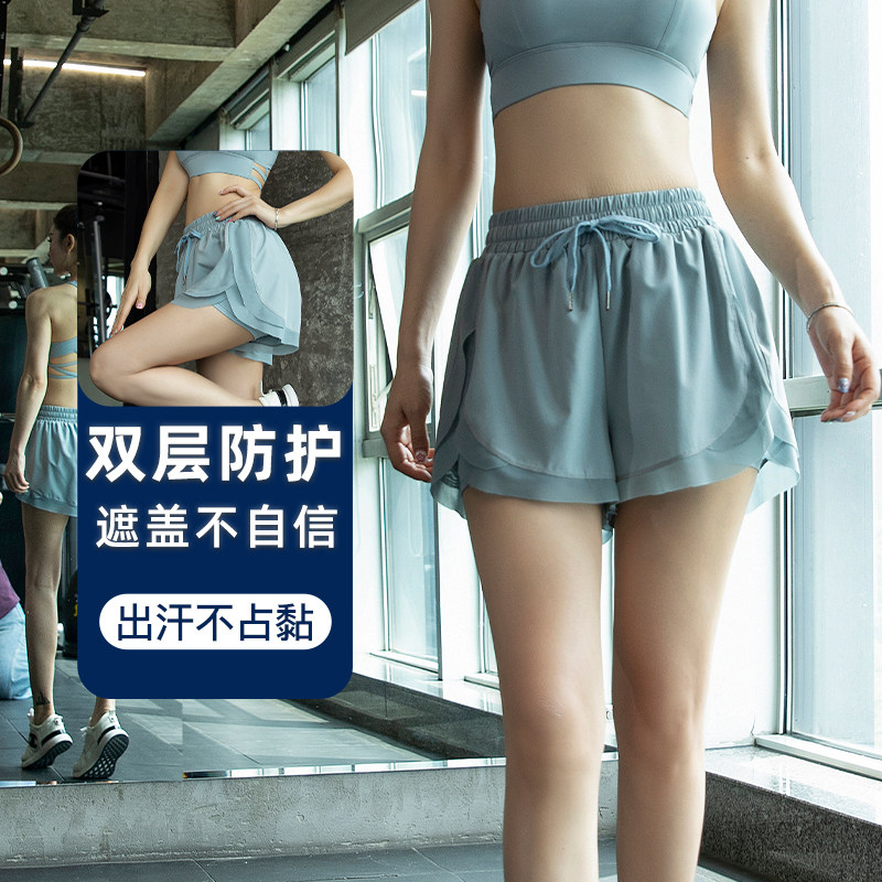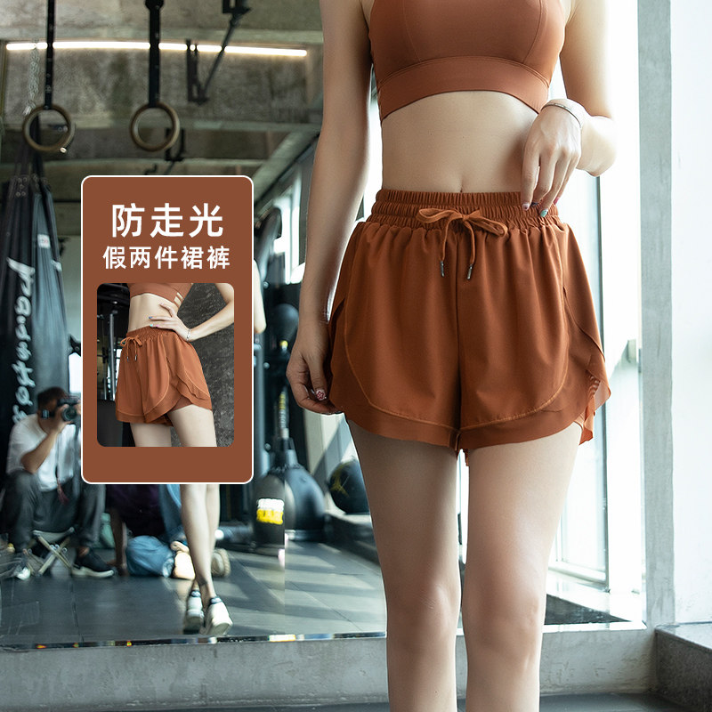 速干透气压缩跑步运动短裤女假两件2026新款瑜伽健身裤子套装薄冬