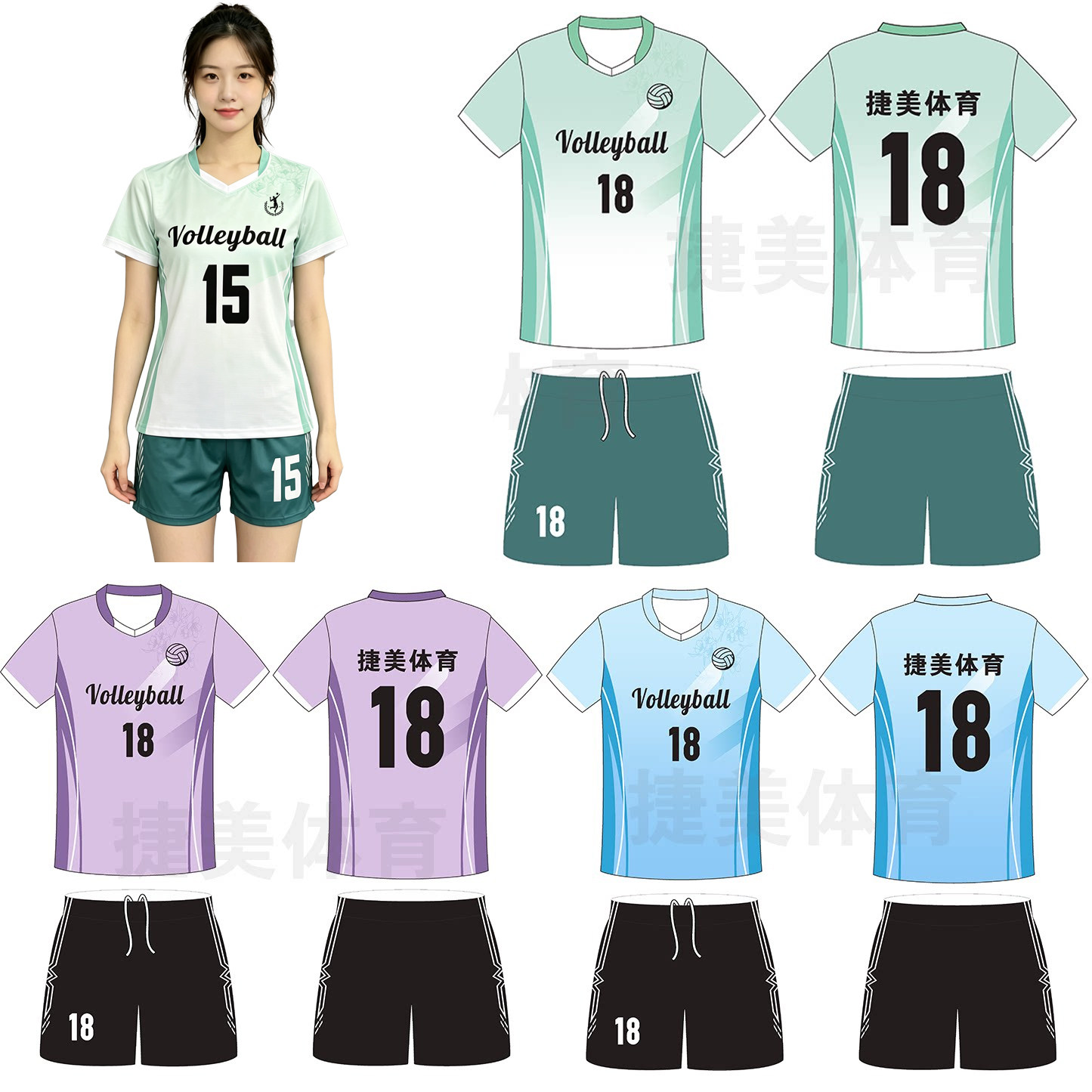 渐变色排球服套装女个性定制墨印比赛运动队服学生男子排球衣短袖