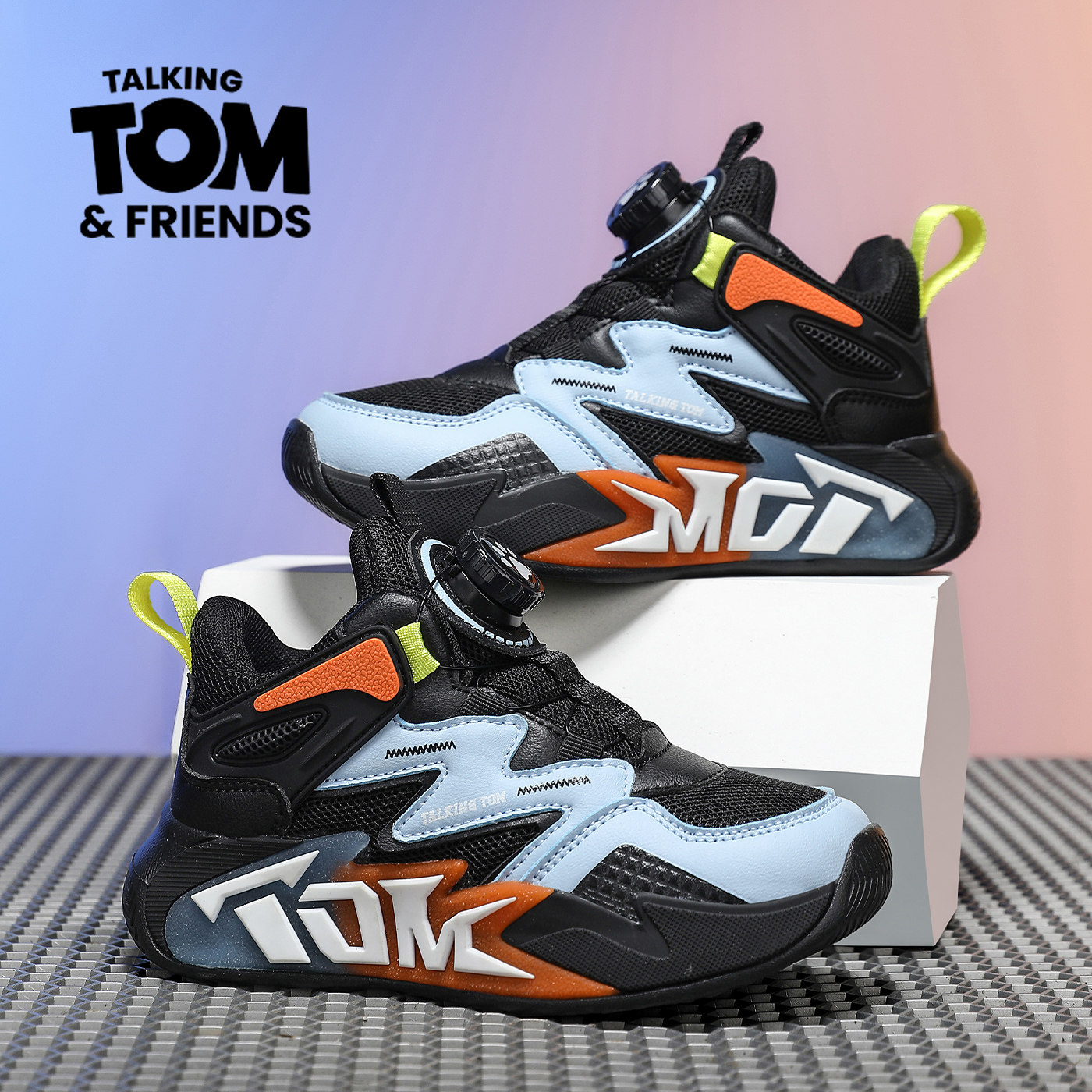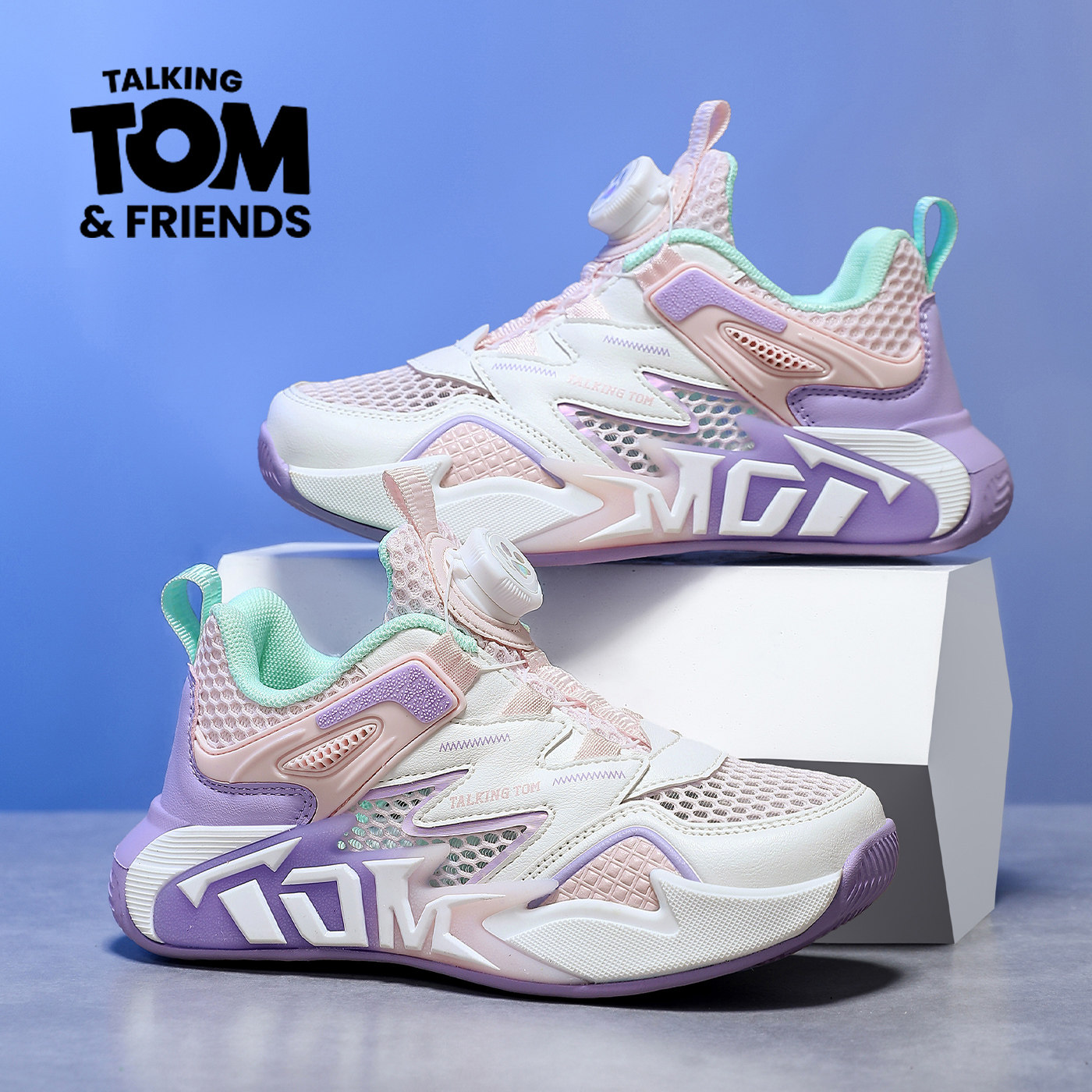 汤姆猫男童单网运动鞋夏季薄款透气儿童软底鞋旋转扣小学生跑步鞋