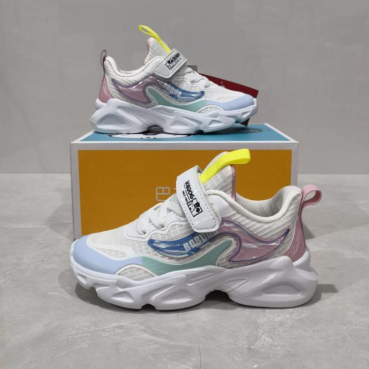 撤柜巴布豆童鞋春款透气双网面女童运动鞋超轻魔术贴儿童跑步鞋子