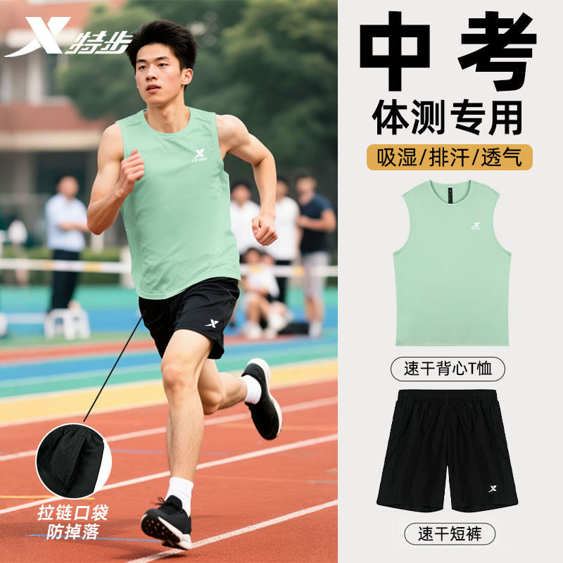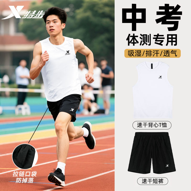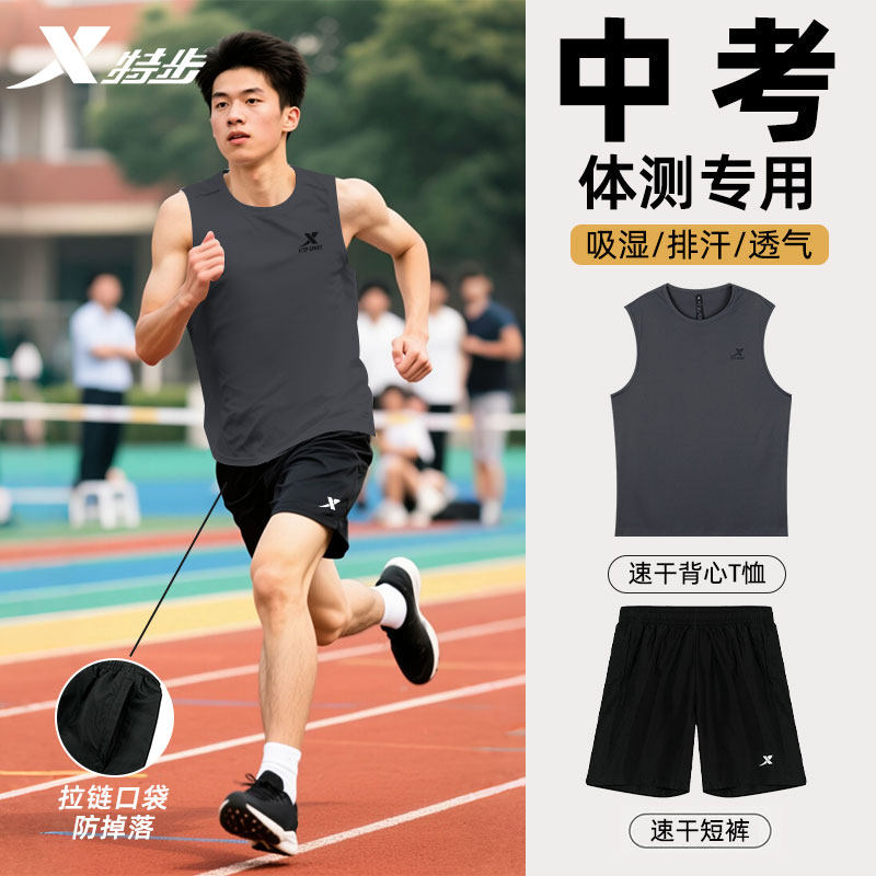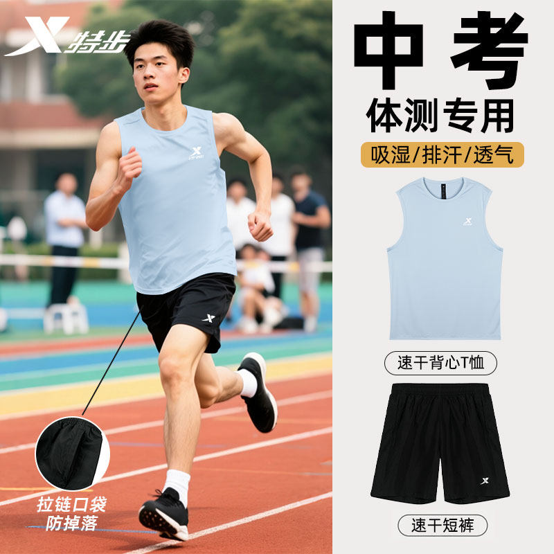 特步中考体测运动套装男无袖T恤背心短裤俩件套男速干衣透气宽松