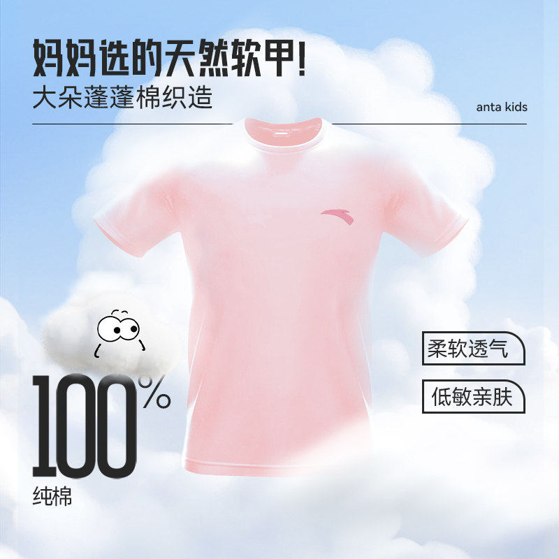 好洗T-安踏儿童短袖T恤衫女童速干衣夏季女孩圆领运动跑步上衣