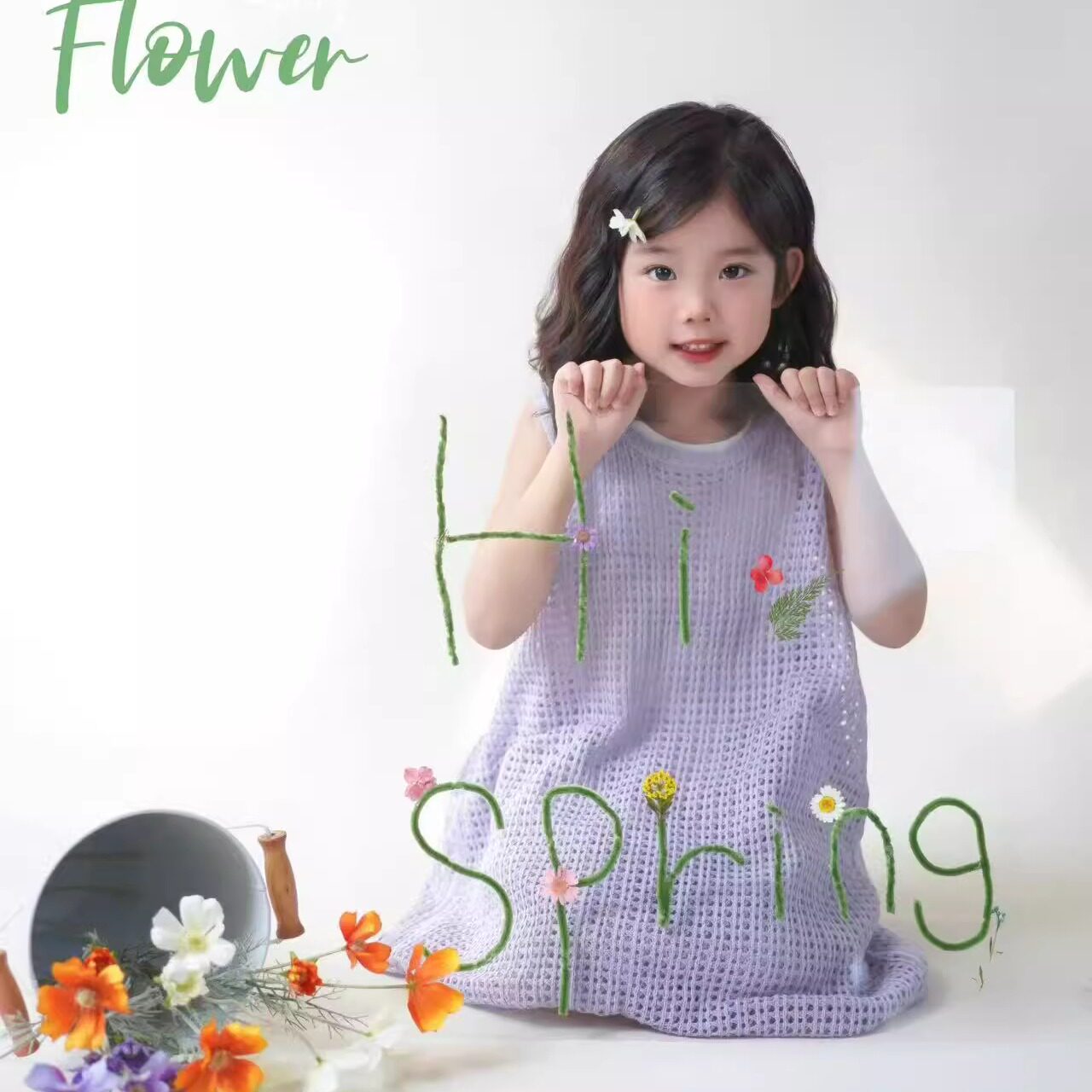 韩系童装女童小清新毛线针织背心裙摄影服装季新款毛衣无袖白裤子