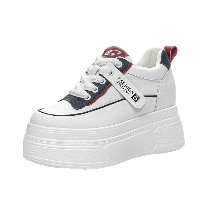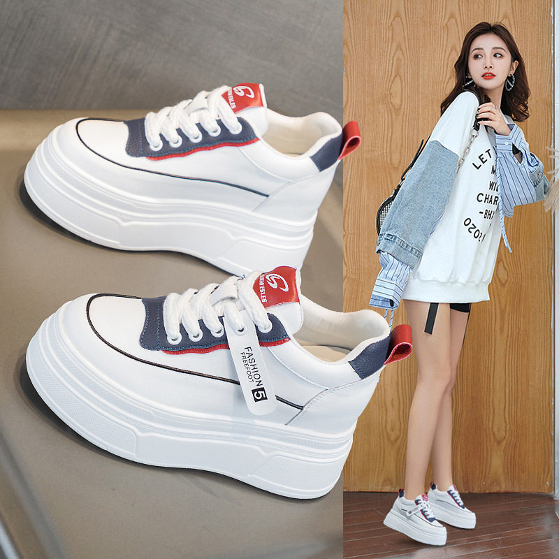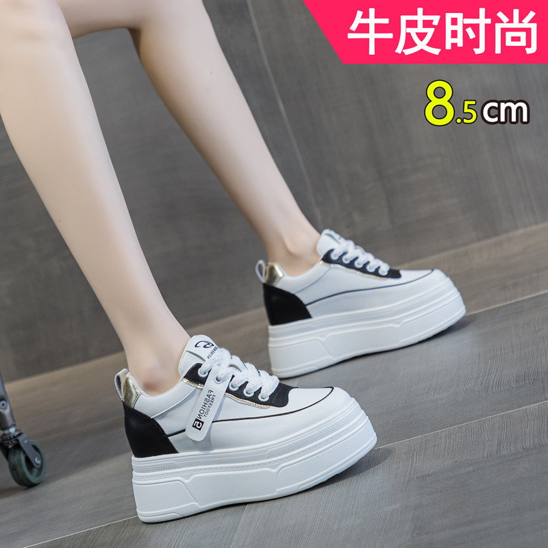 2025新款春款小个子内增高女鞋8cm真皮小白鞋女休闲厚底松糕白鞋