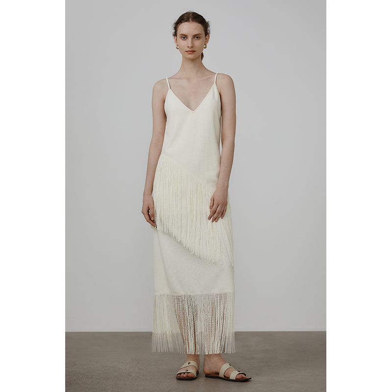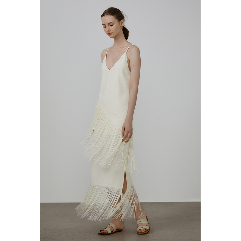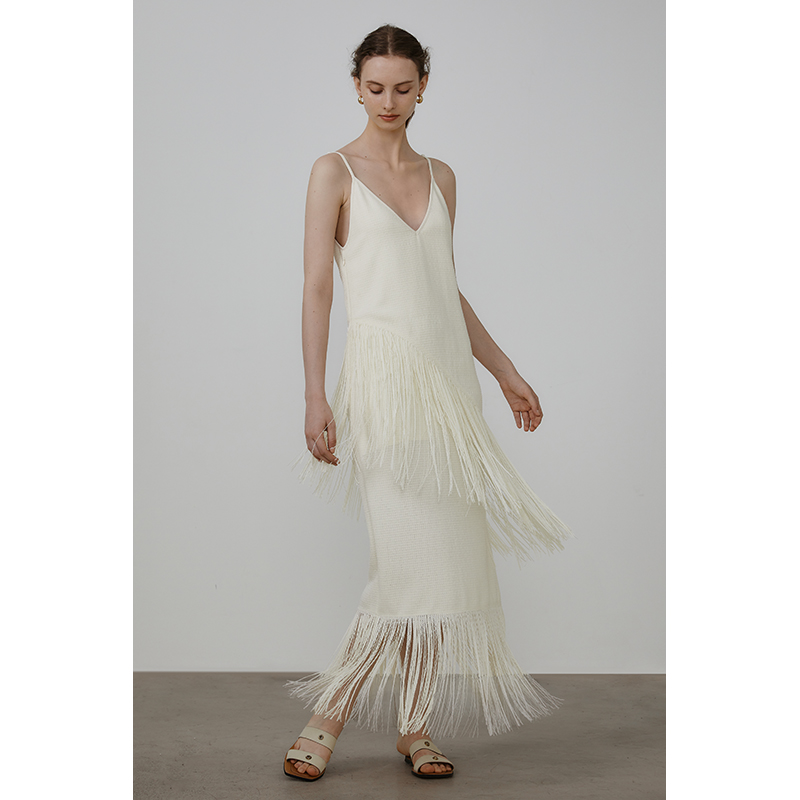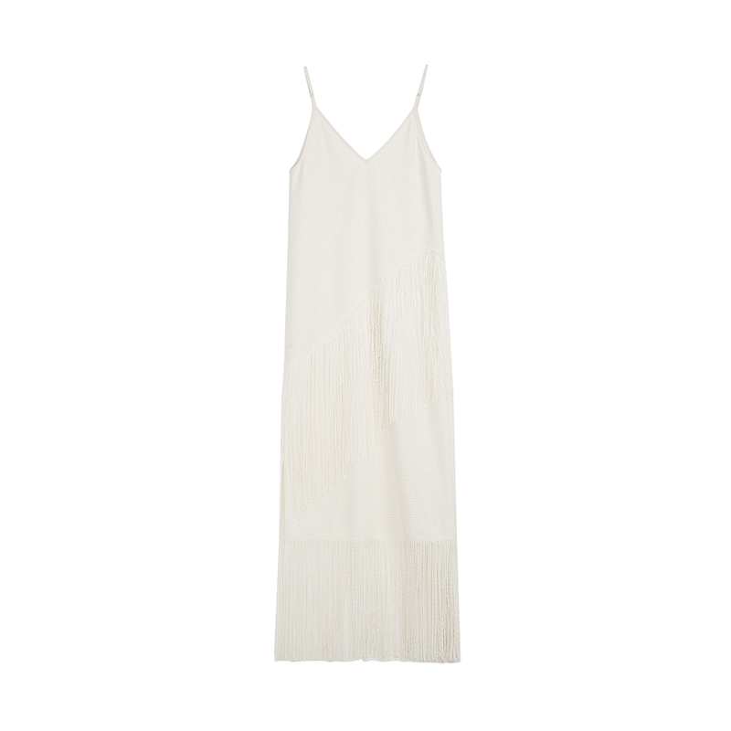 UNSPOKEN白色流苏度假连衣裙女设计感小众法式吊带裙高级感长裙子