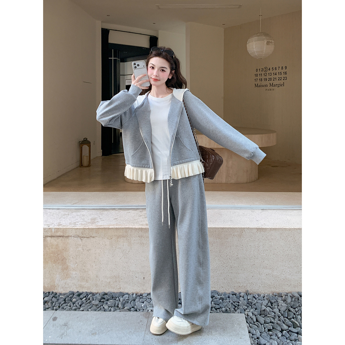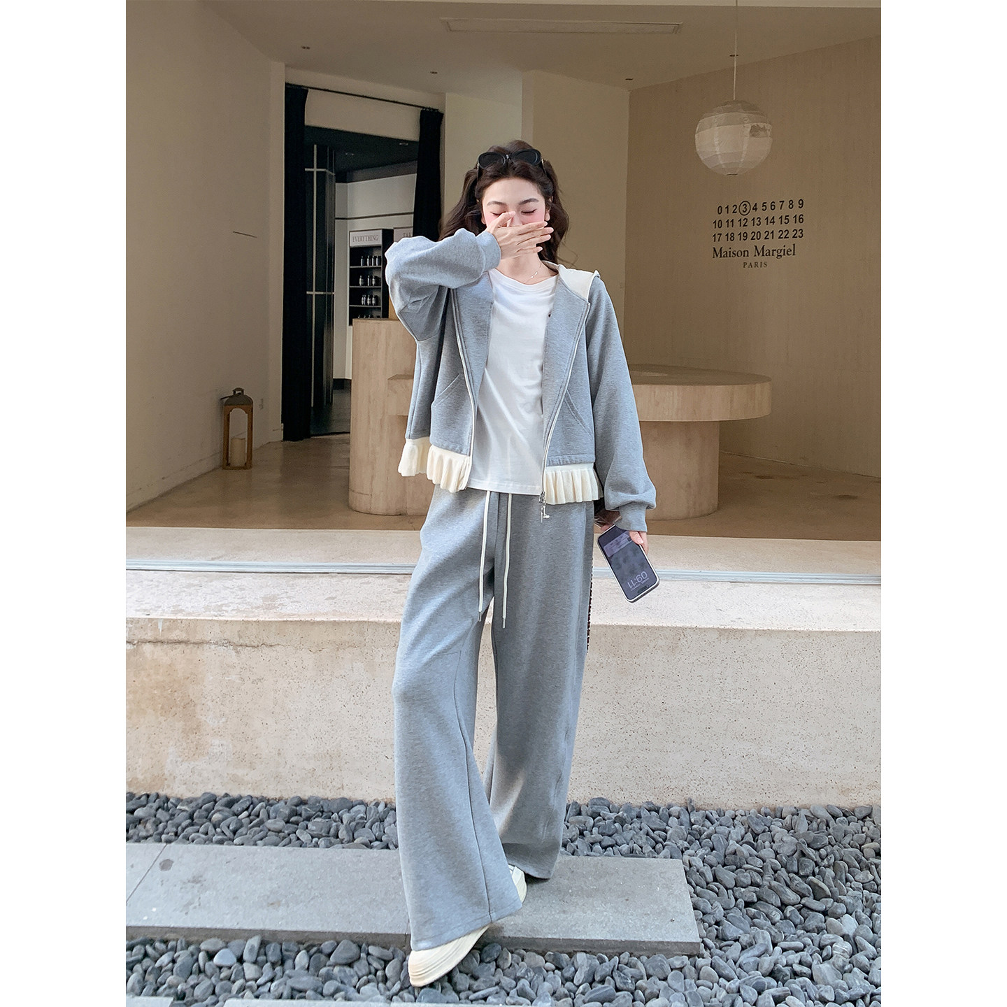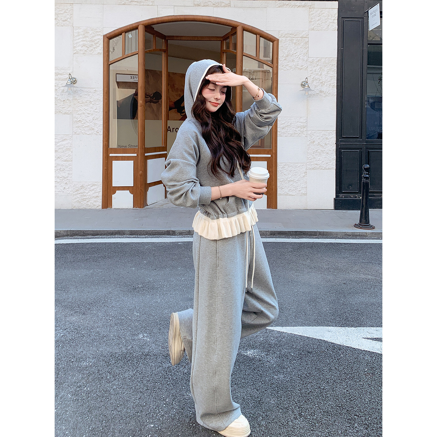 韩系休闲运动风套装女春季2026新款小个子短款连帽卫衣长裤两件套
