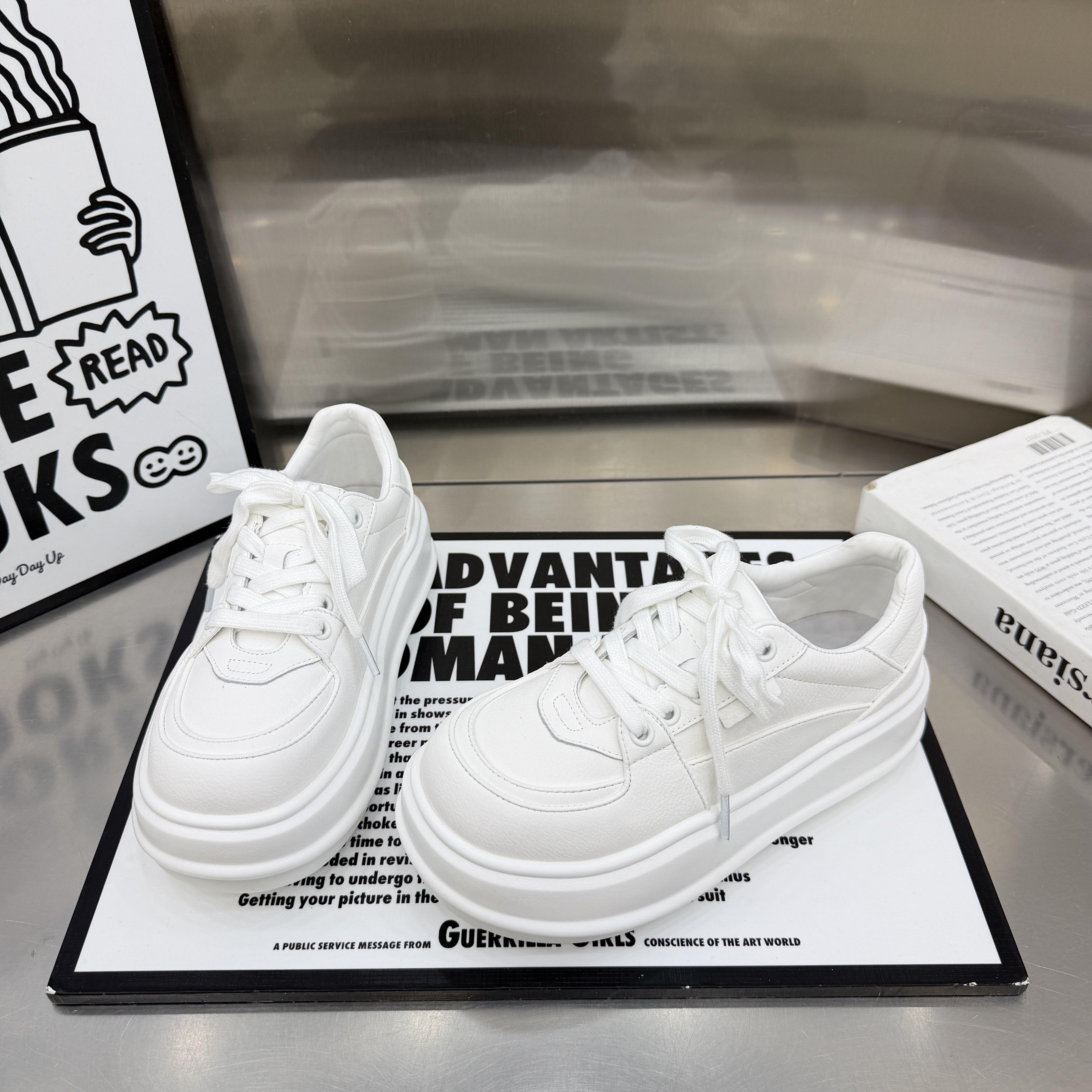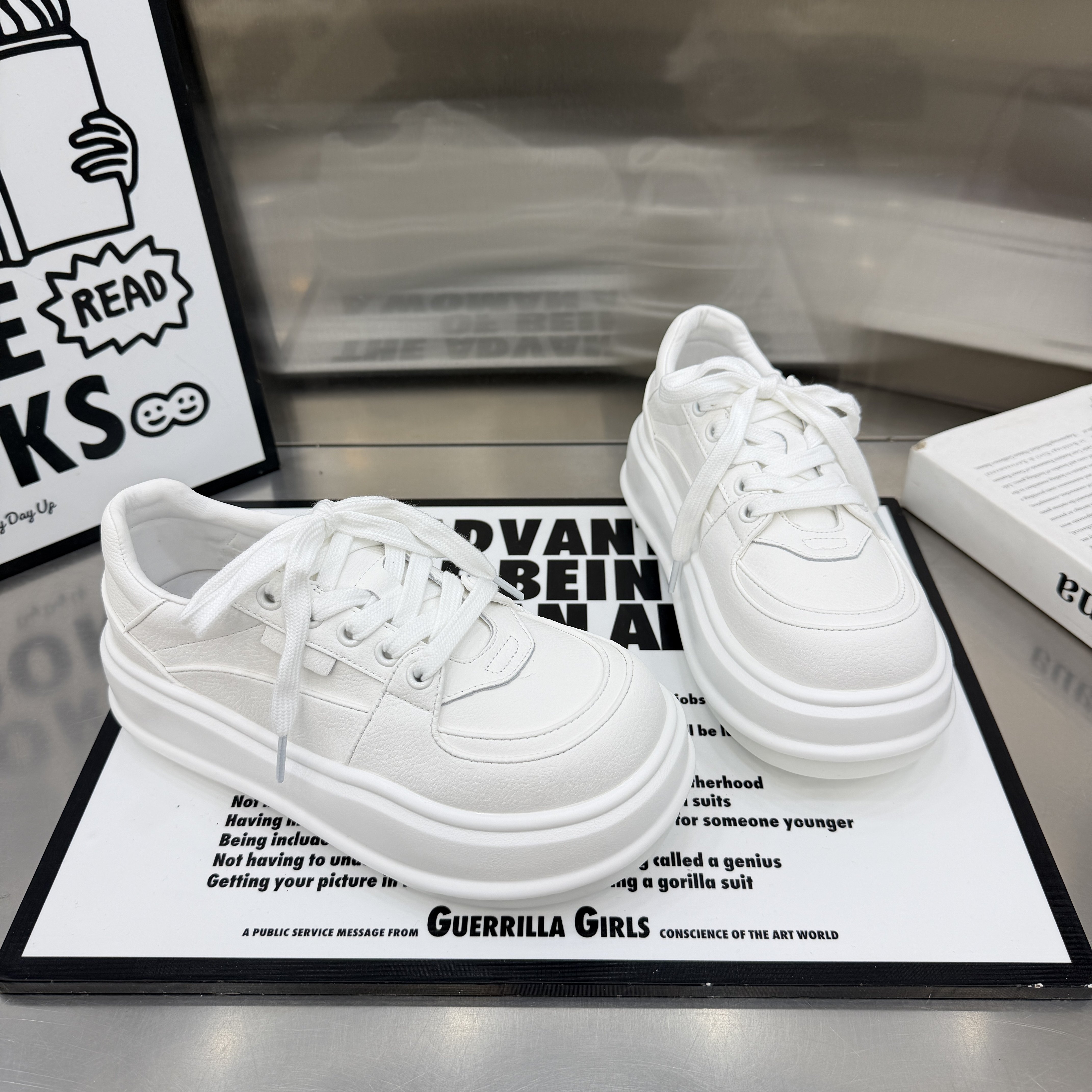 真皮厚底小白鞋系带增高休闲运动板鞋透气不闷脚百搭舒适洋气时尚
