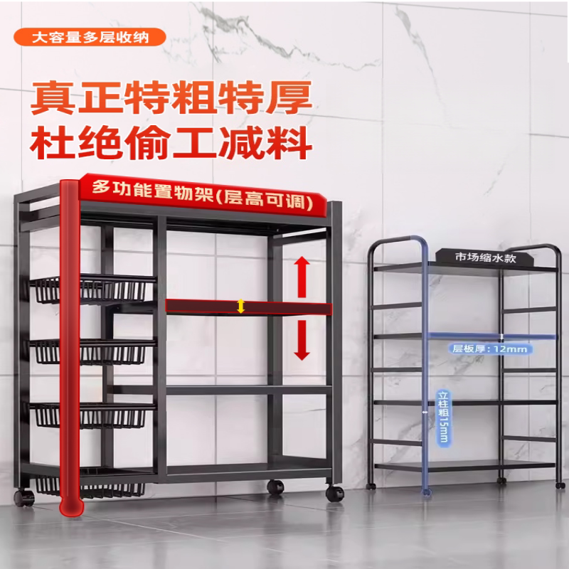 中伟厨房置物架小户型专用落地多层省空间免打孔可移动出租屋收纳