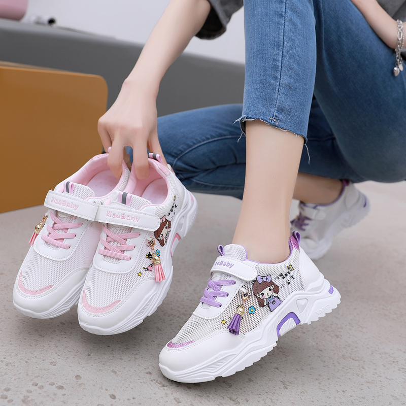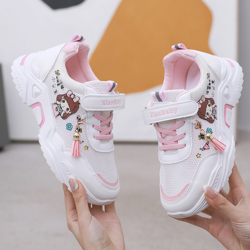 女童鞋子2024年夏季新款女孩小白鞋网面镂空透气老爹鞋薄款运动鞋