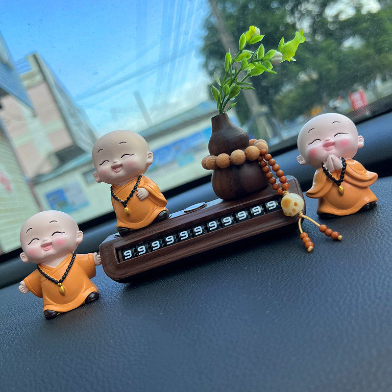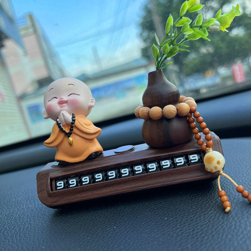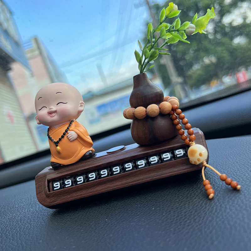 汽车临时停车牌电话号码挪车牌葫芦滚轮式创意平安小和尚车内摆件