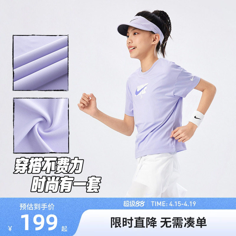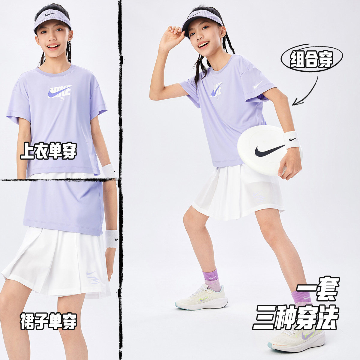 Nike 3brand女童套装短袖短裙两件26夏季新款儿童运动T恤裙子童装
