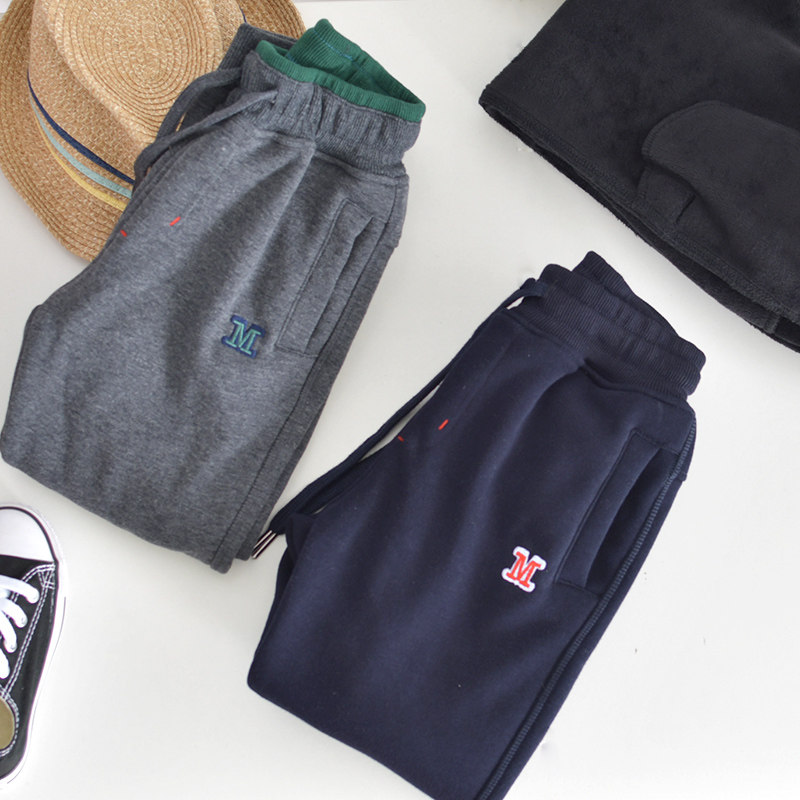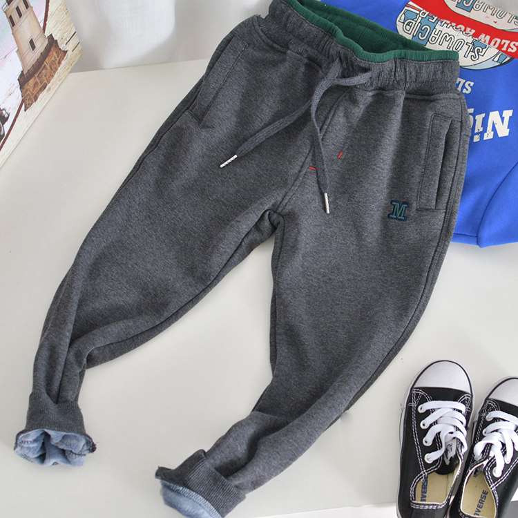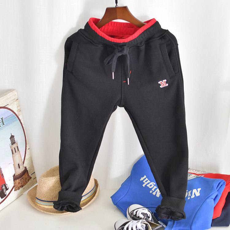 秋冬儿童加绒不倒绒纯棉运动裤中大童男童一体绒加厚保暖运动裤子