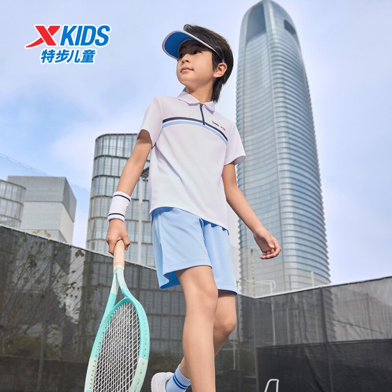 特步童装夏季男童运动针织网球套装儿童运动短袖短裤中大童两件套