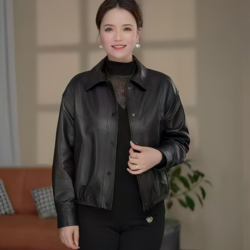 法歌弟高级感黑色皮衣外套女短款翻领真皮夹克2026新款皮衣