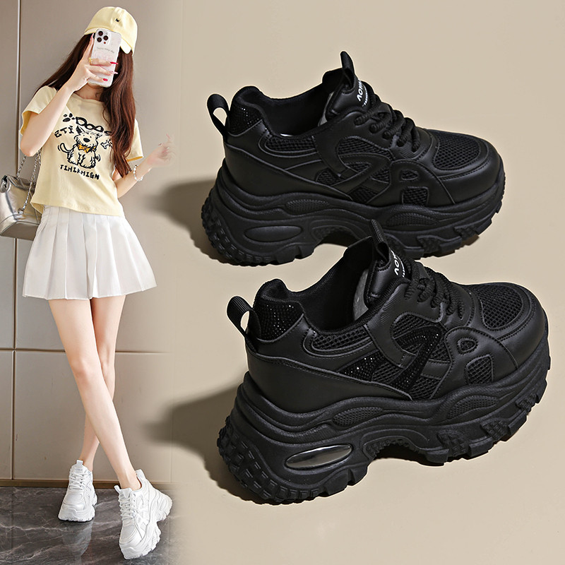 烫钻内增高女鞋网面透气老爹鞋2026春季新款矮个子增高8cm休闲鞋