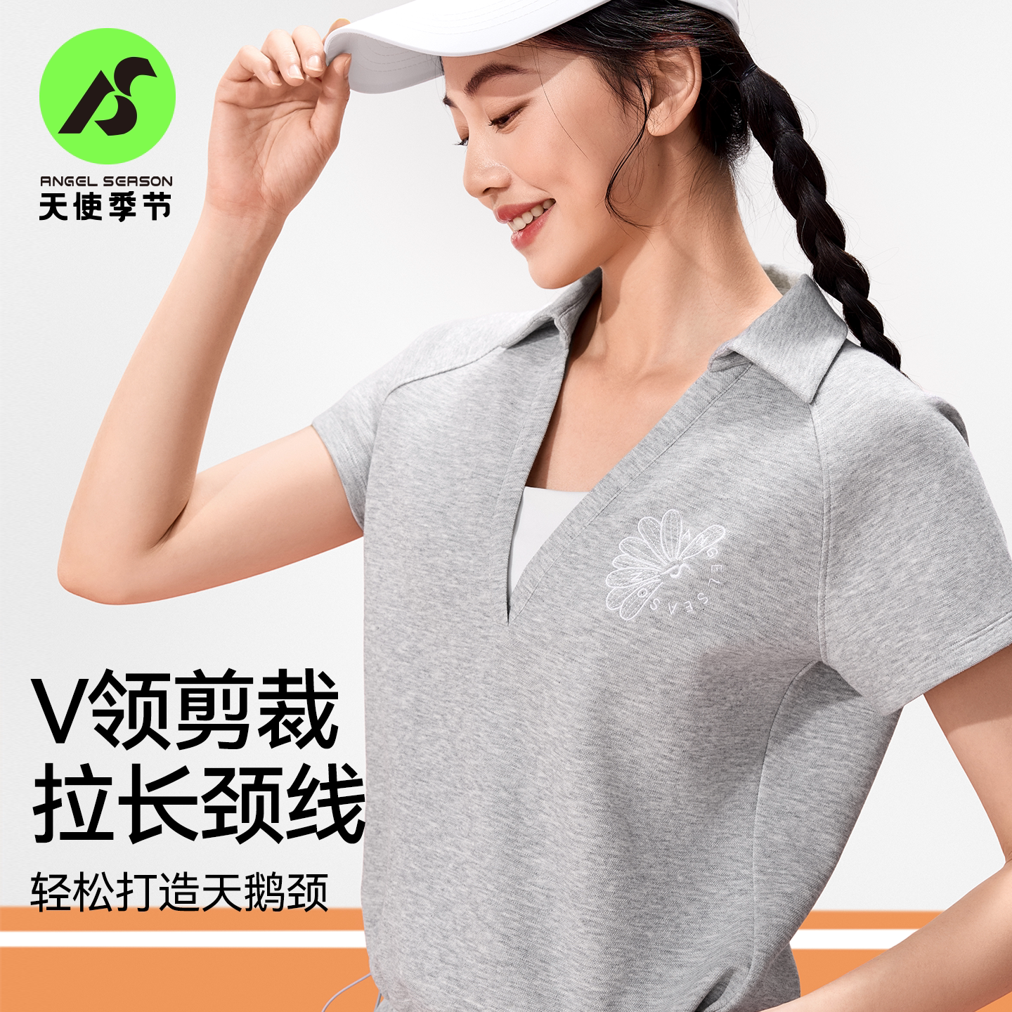 天使季节网球服女短袖V领2026新款polo衫羽毛球服运动套装T恤上衣
