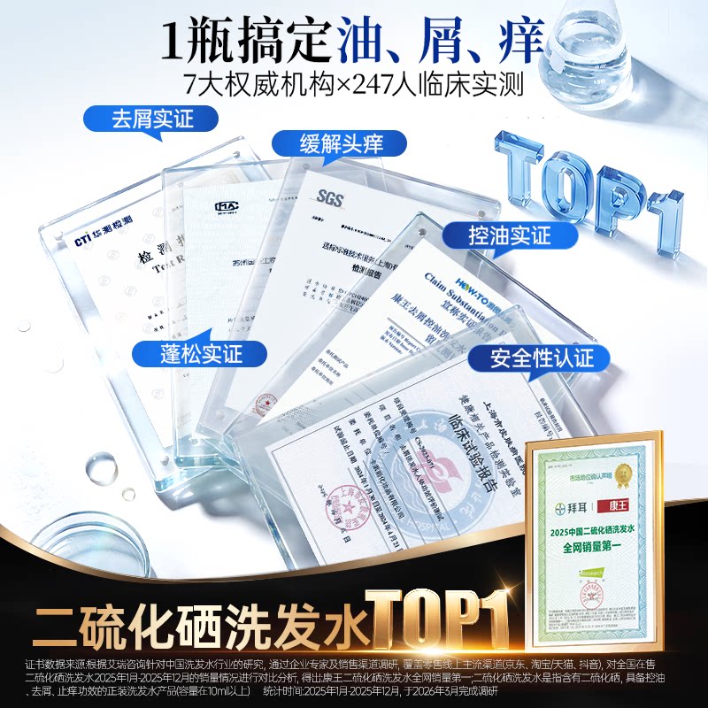 康王止痒去屑洗发水二硫化硒洗发液控油蓬松洗头膏无硅油温和清洁