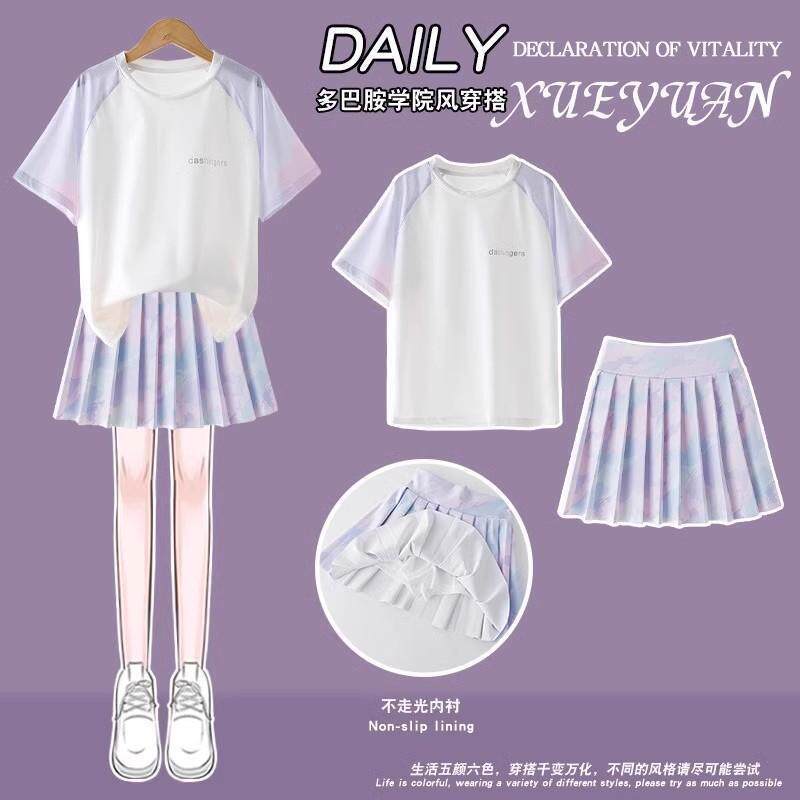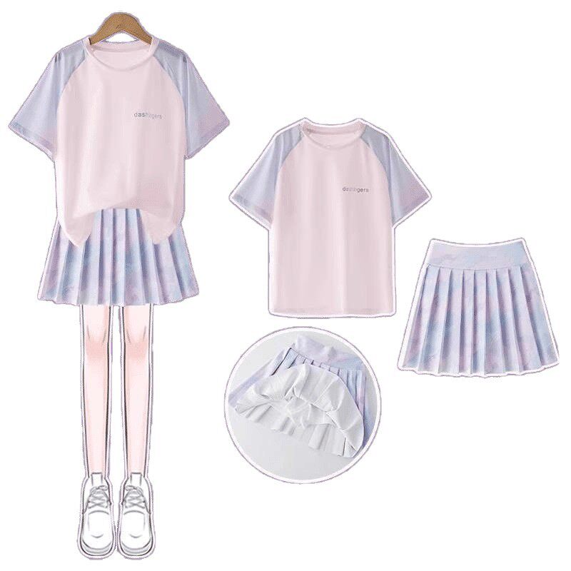 女童速干运动套装夏季裙子儿童冰丝网球羽毛球训练服大童女孩跑步