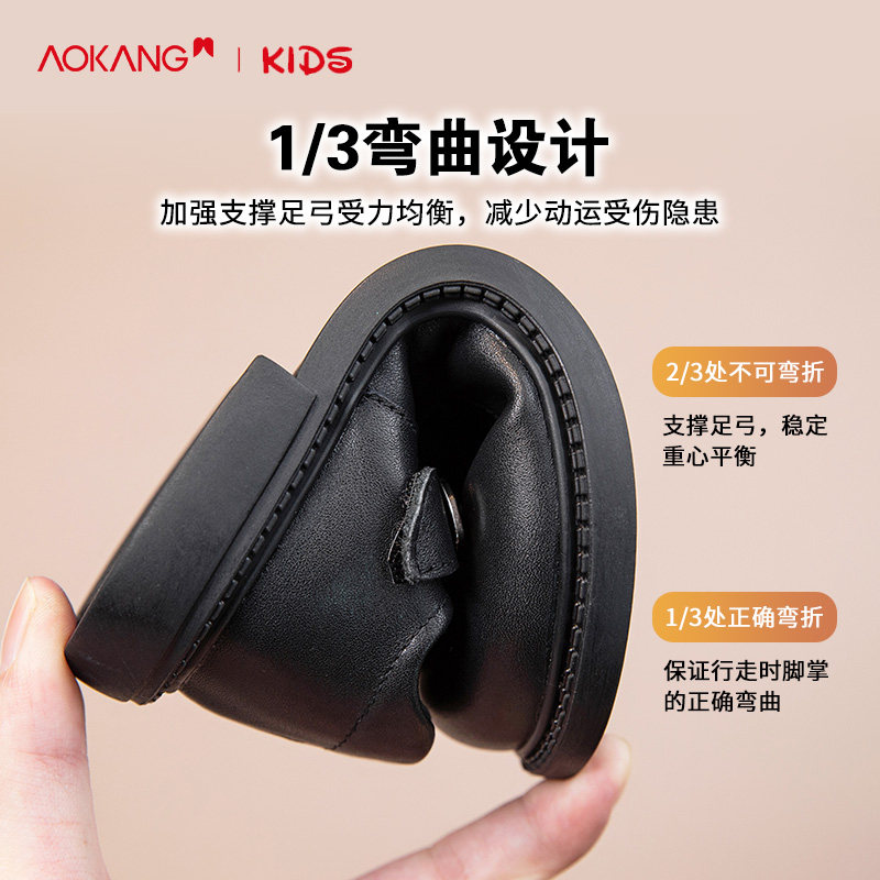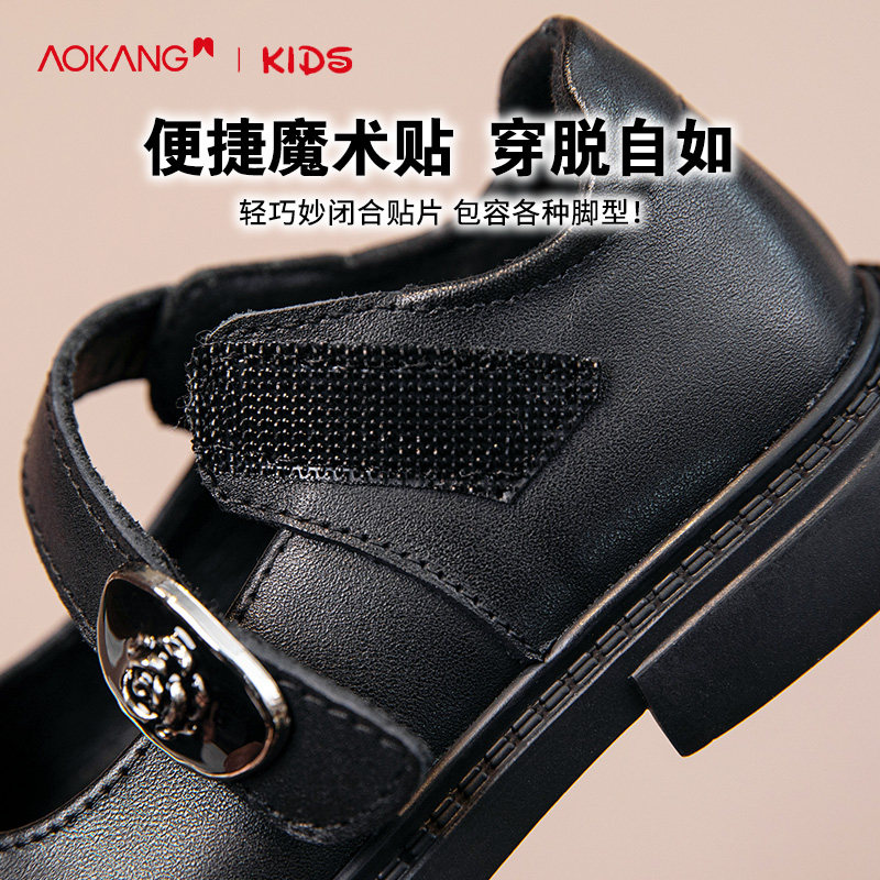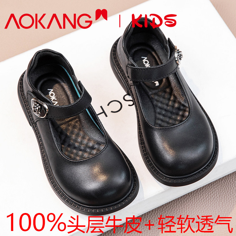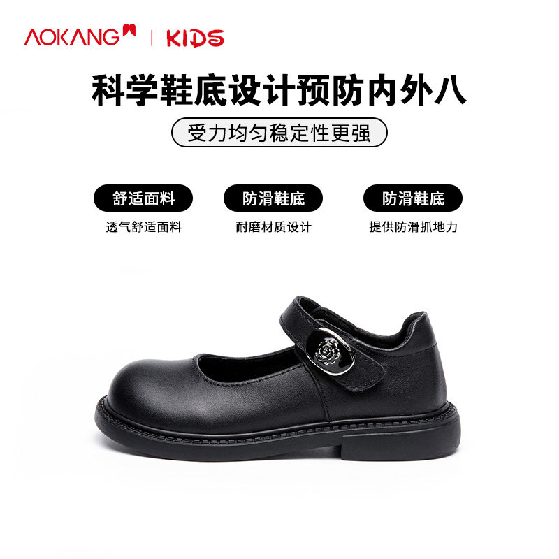 奥康女童黑色皮鞋真皮春秋儿童单鞋软底小女孩公主礼仪表演出鞋夏