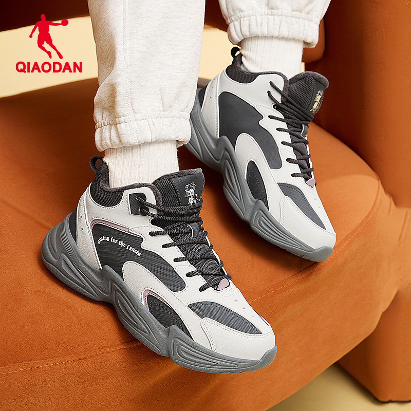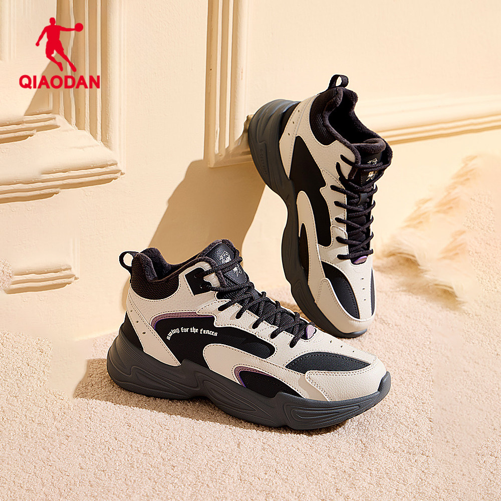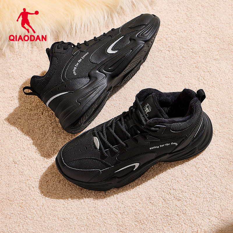 乔丹休闲鞋女2026冬季皮面防水高帮加绒保暖大棉鞋黑色运动鞋女鞋