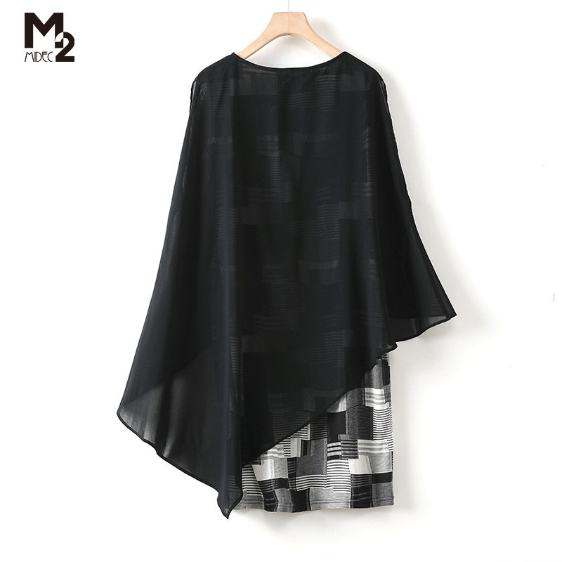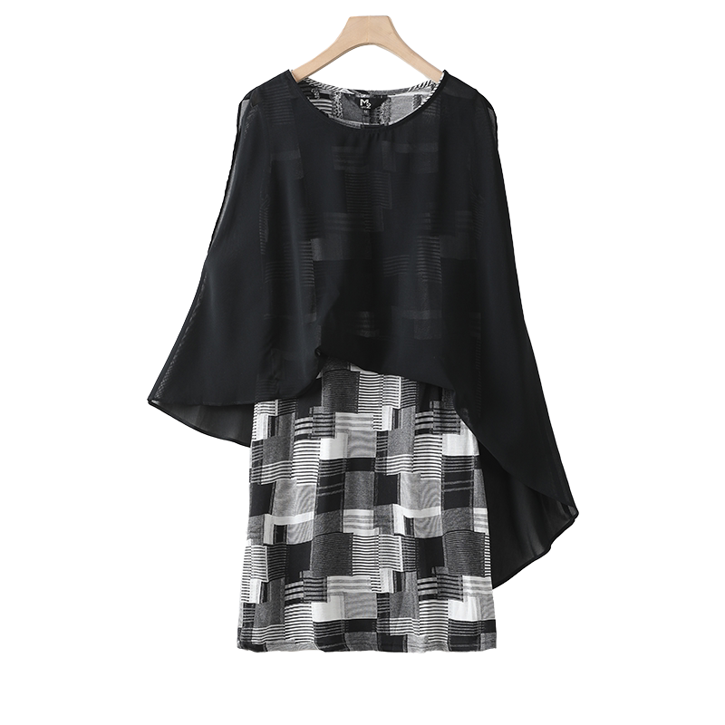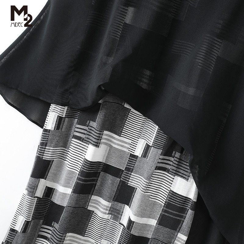 M2折扣店女装春夏两件套雪纺连衣裙大码显瘦中长款韩版小众裙子